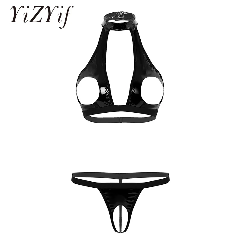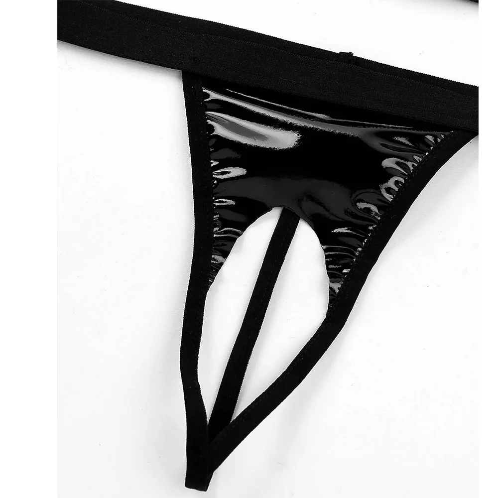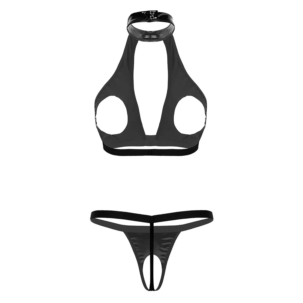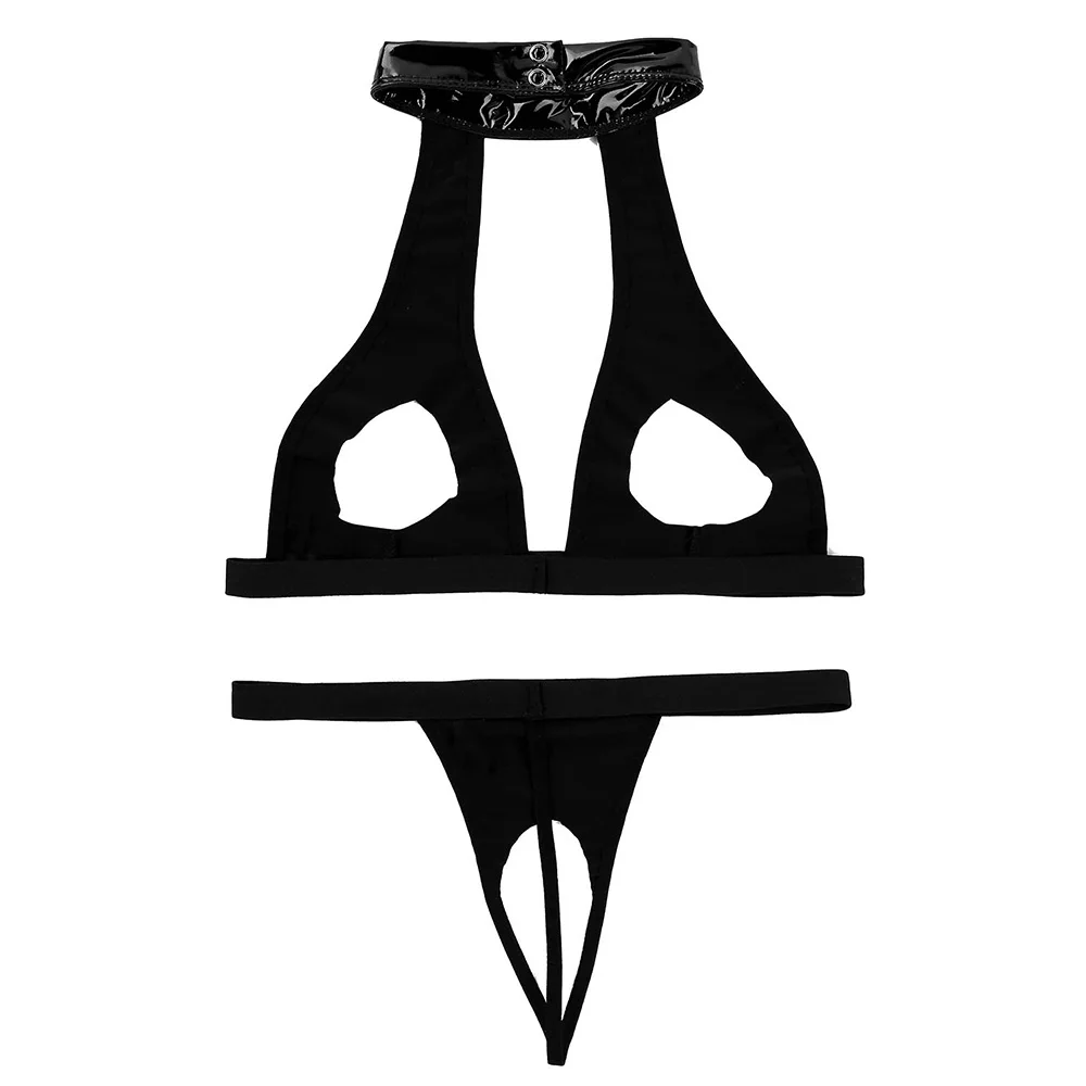 Женское сексуальное нижнее белье из искусственной кожи, с вырезом на шее