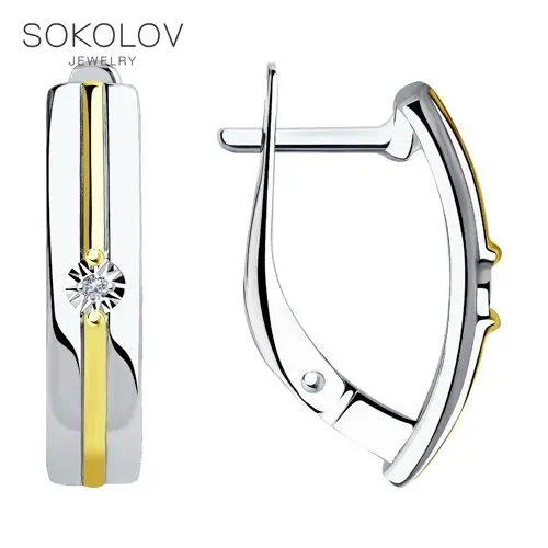 Серьги SOKOLOV из золочёного серебра с бриллиантами, Серебро, 925, Женские, Серьги 2022 тренд, Оригинальная продукция