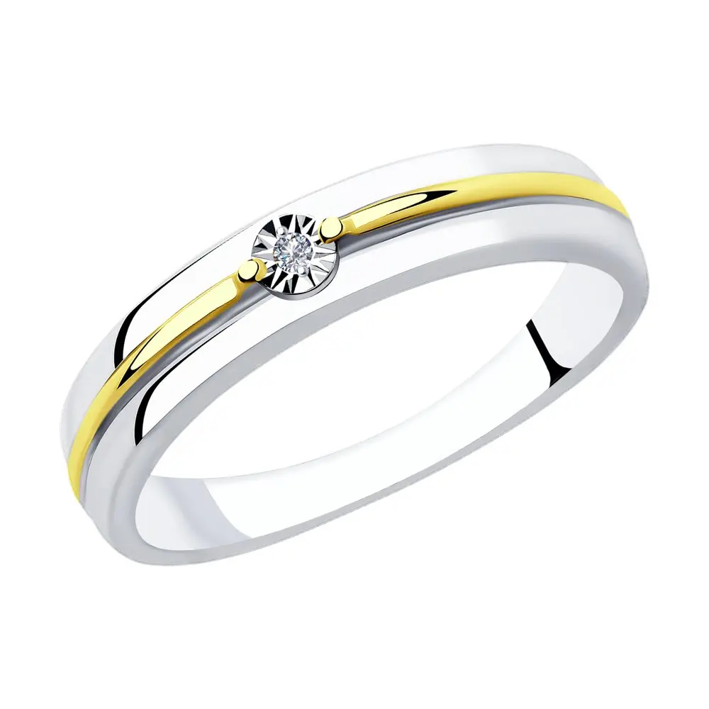 Кольцо SOKOLOV из золочёного серебра с бриллиантомСтильное кольцо из золочёного серебра с бриллиантом понравится поклоннице трендовой классики. Среди особенностей модели – эффектная шинка из серебра полярно разных оттенков и рельефный каст, усиливающий сияние драгоценного камня-вставки. Сдержанный, но элегантный дизайн кольца позволяет носить его каждый день, дополняя образ сольным блестящим акцентом или сочетая кольцо с другими украшениями.