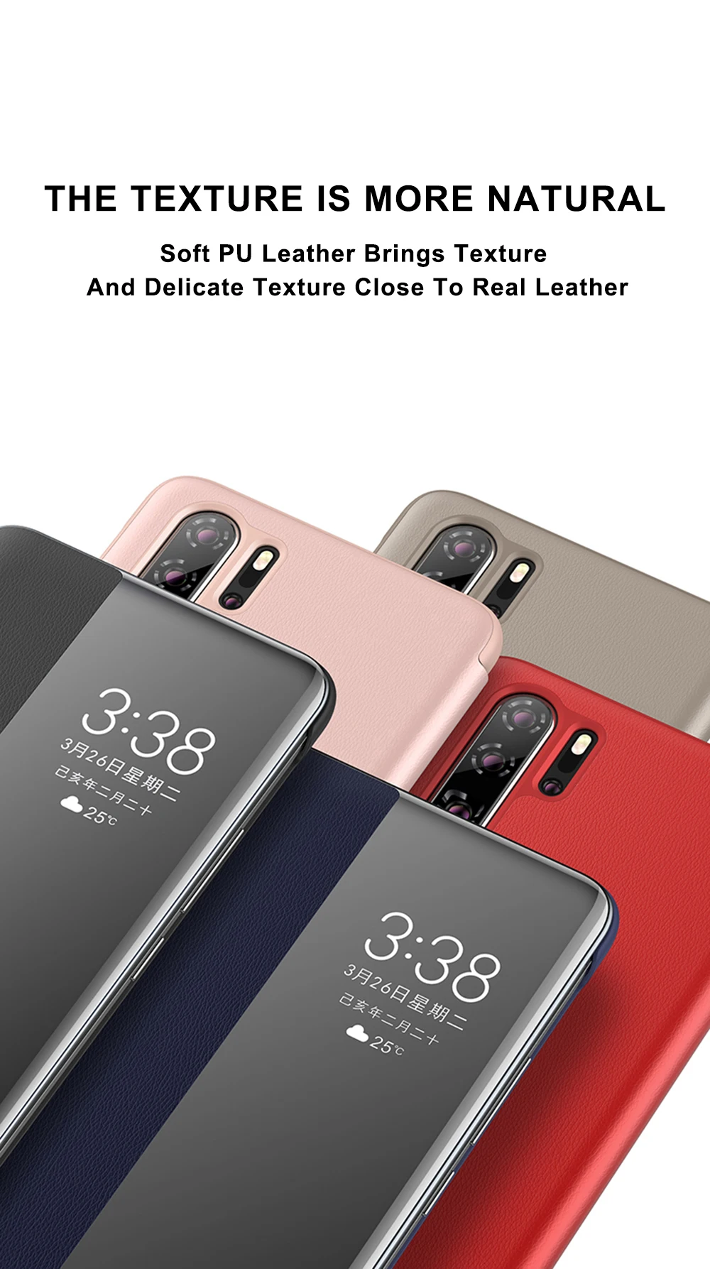 Кожаный магнитный чехол Smart View для Huawei P40 P30 Pro P20 Lite ...