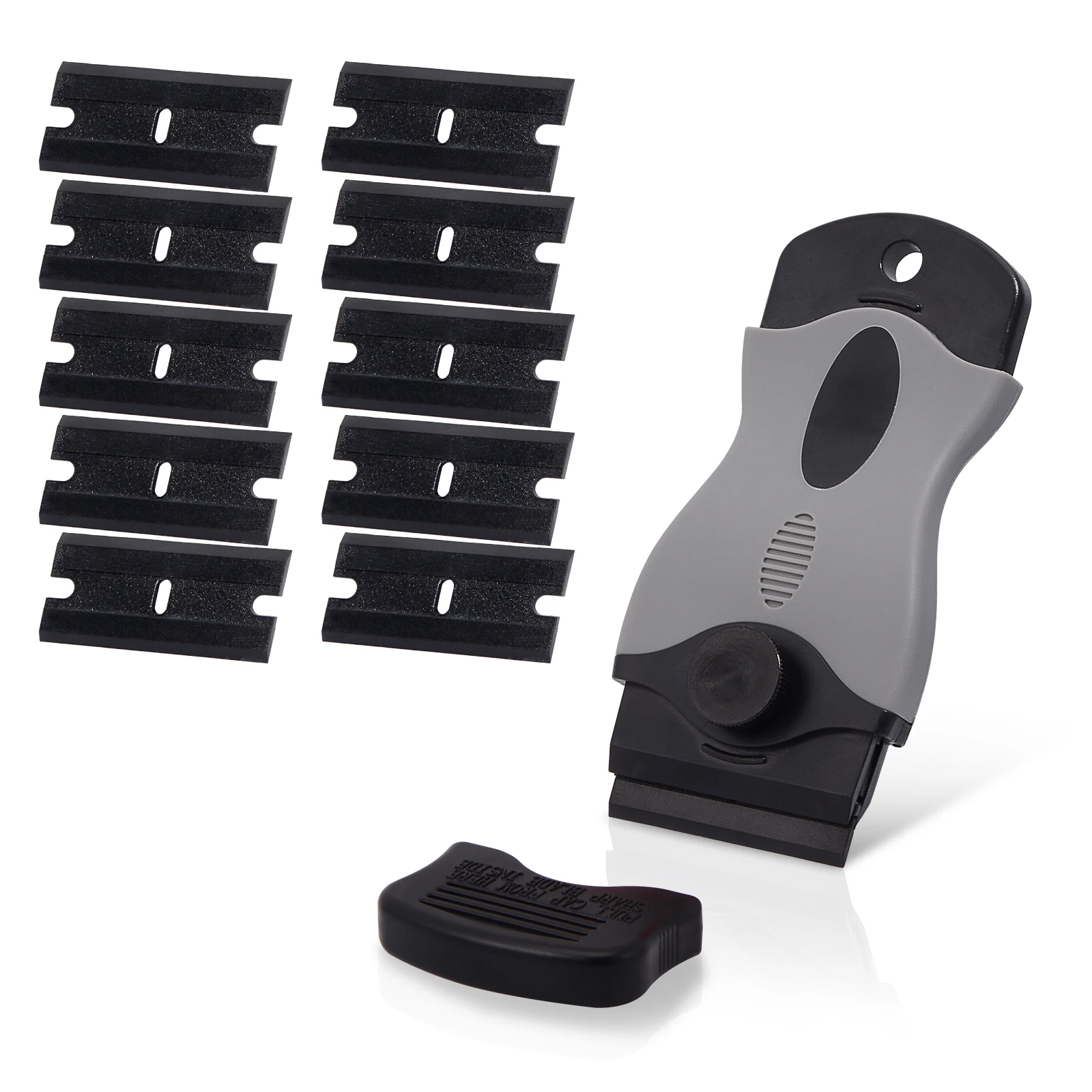 EHDIS виниловый скребок для удаления автомобильных наклеек, скребок для бритвы + 10 пластиковых лезвий для бритвы, углеродное волокно, керамика, стекло, духовка, инструмент для чистки