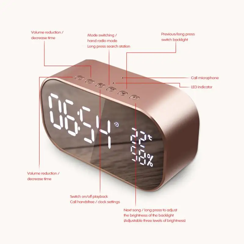 Является ли bluetooth-динамик также будильником, также может использоваться как зеркало и температура дисплея