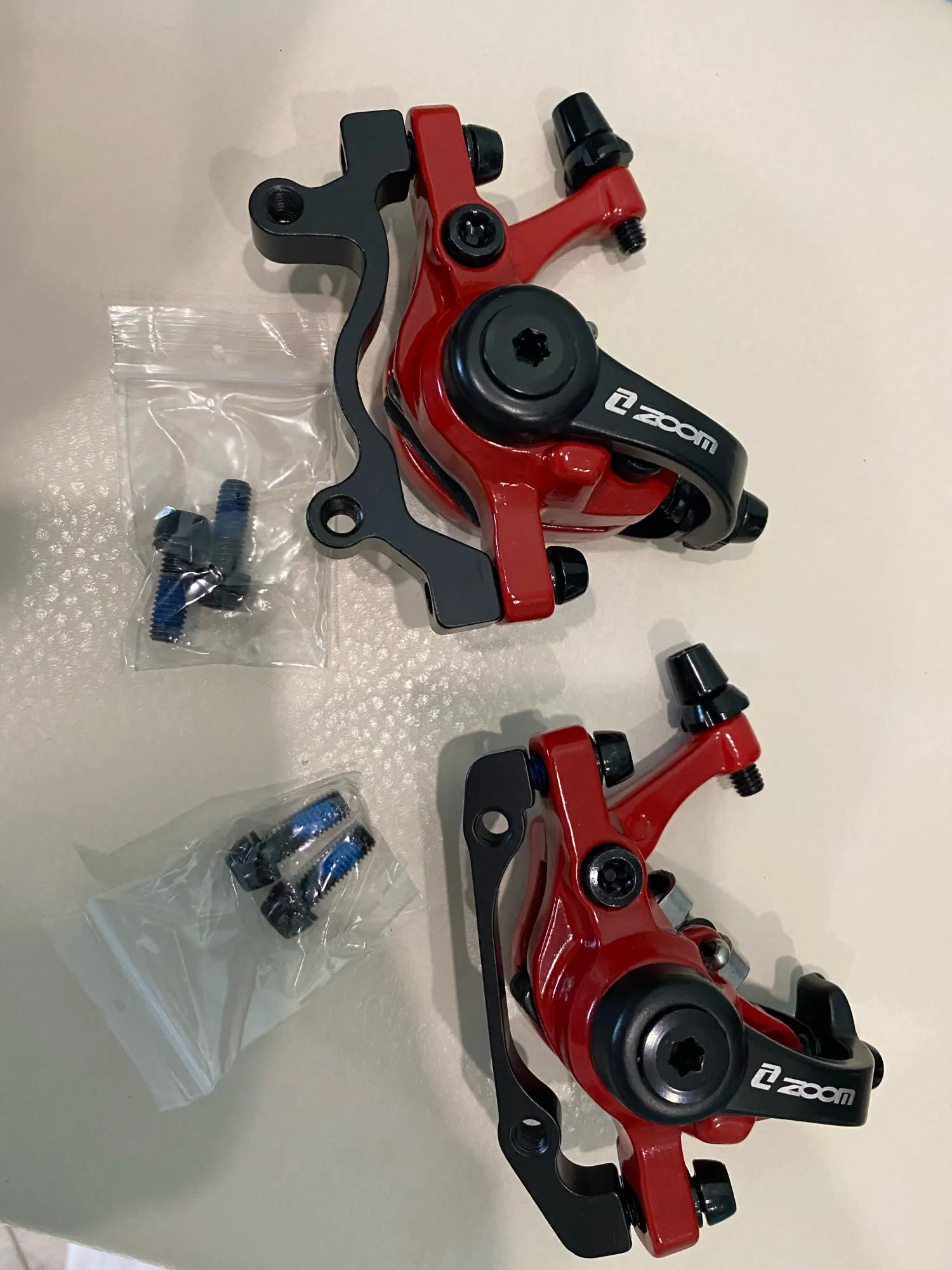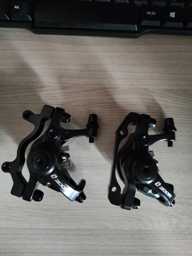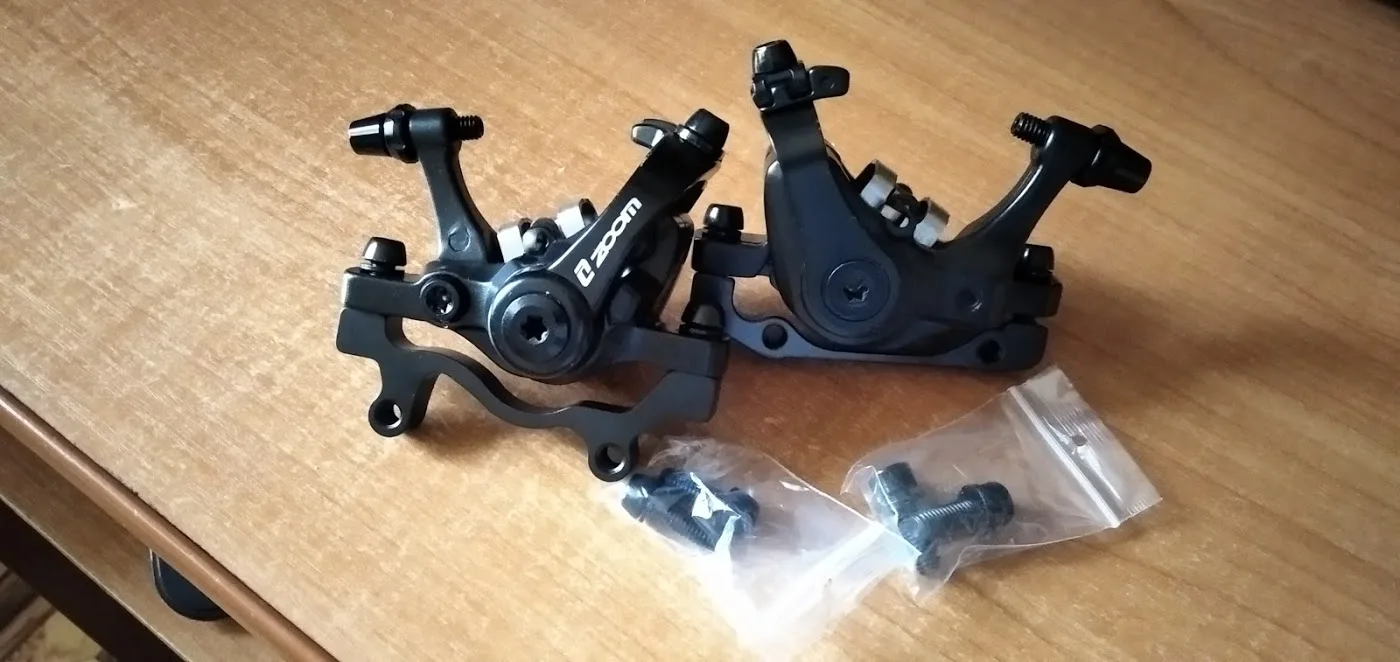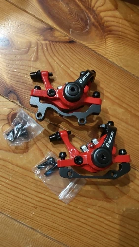 Пришло очень быстро, всего лишь за 1,5 недели. Первая проблема была с штатными креплениями, так как у меня на раме пластина не параллельна диску, пришлось брать со старых тормозов полукруглые шайбы. Во-вторых, тормоза достаточно широкие. Передний думаю надо немного закурить чтобы спицу не цеплял, хоть на накате особо не сказывается. Сегодня успел проехаться: даже непритертые тормозят хорошо и с настройкой проблем не возникло. Не скрипят.