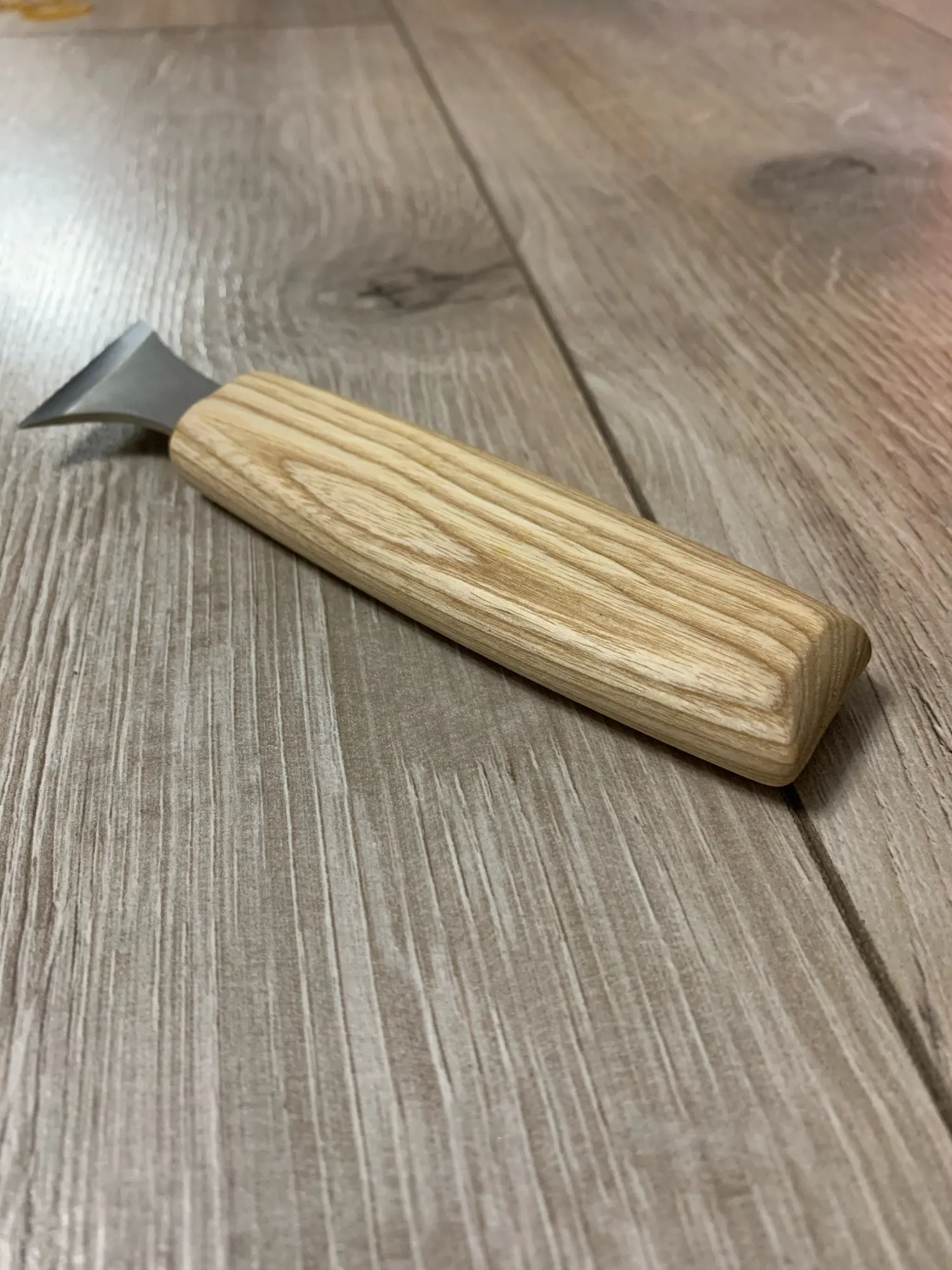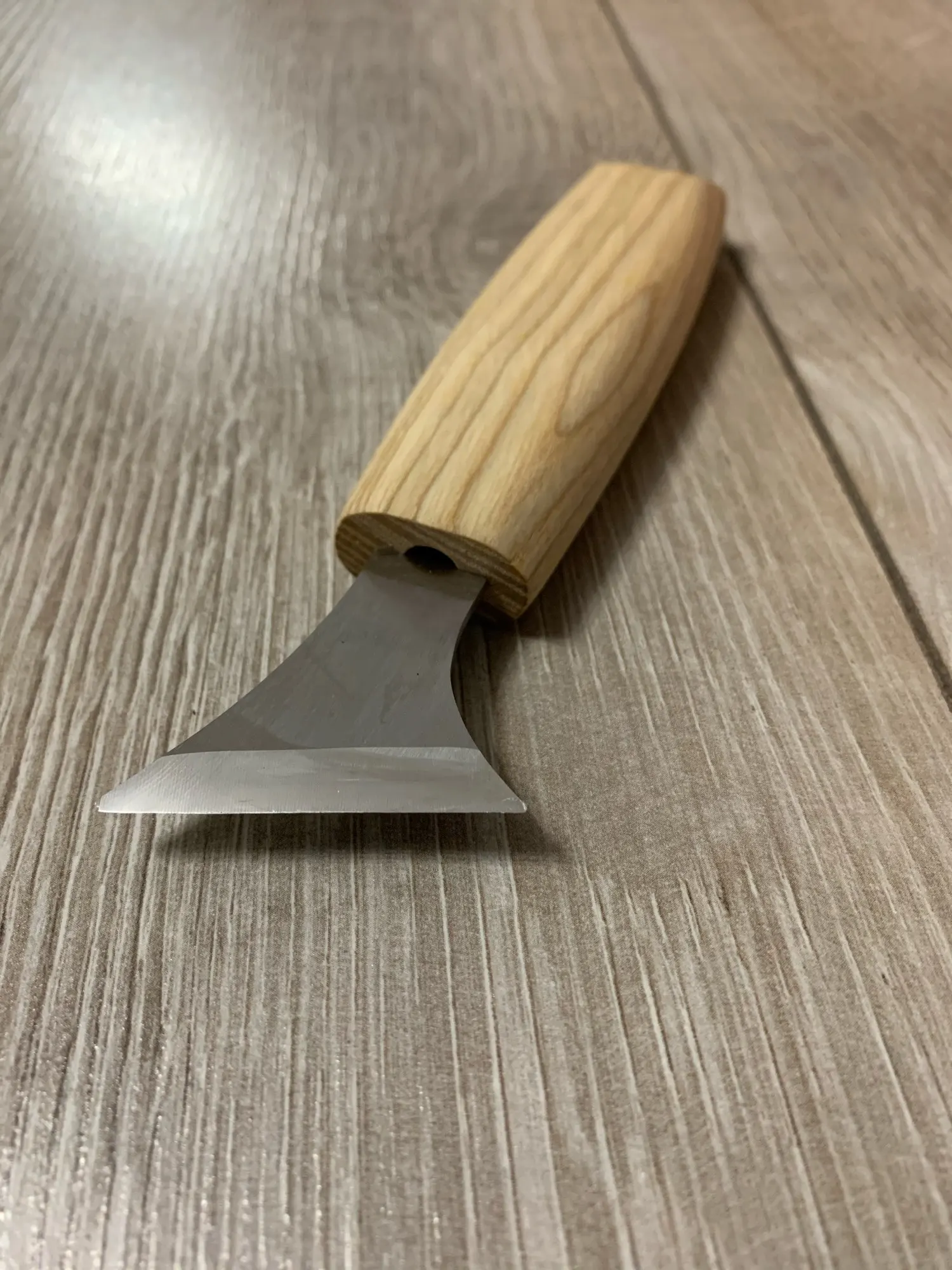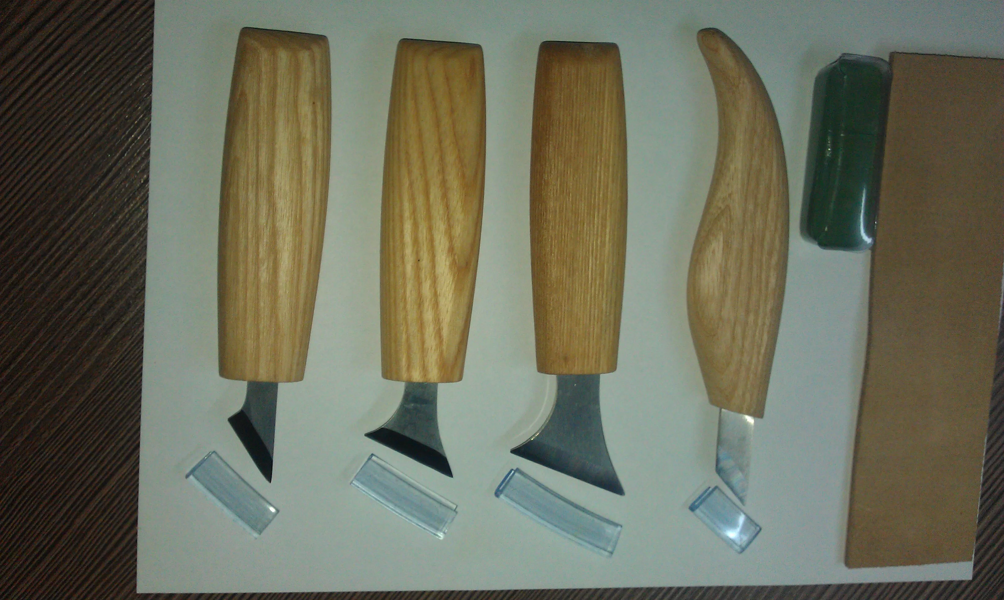 посылка пришла быстро. Ножи заточены, но кончик ножа немного закруглён, как бывает при заточке на механическом круге. Надо будет переточить. Угол заточки для резьбы по мягкому дереву, сталь хорошая.