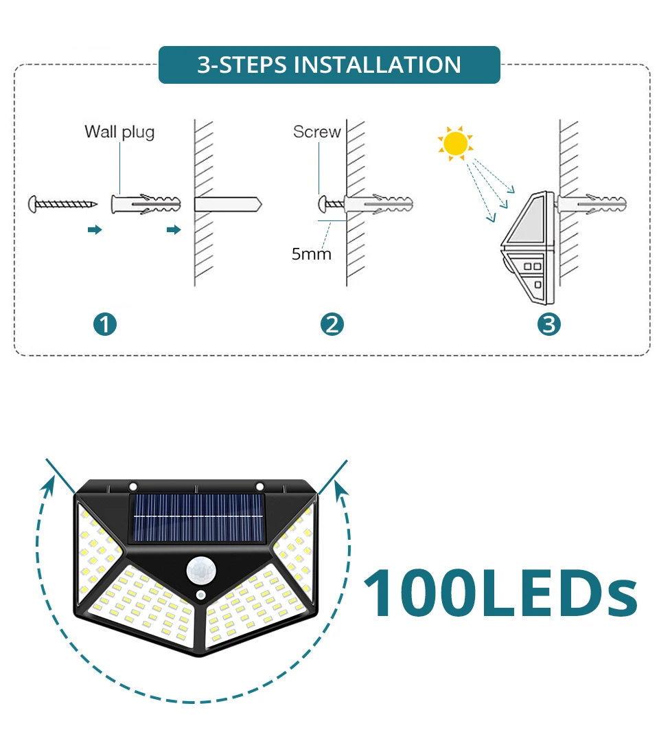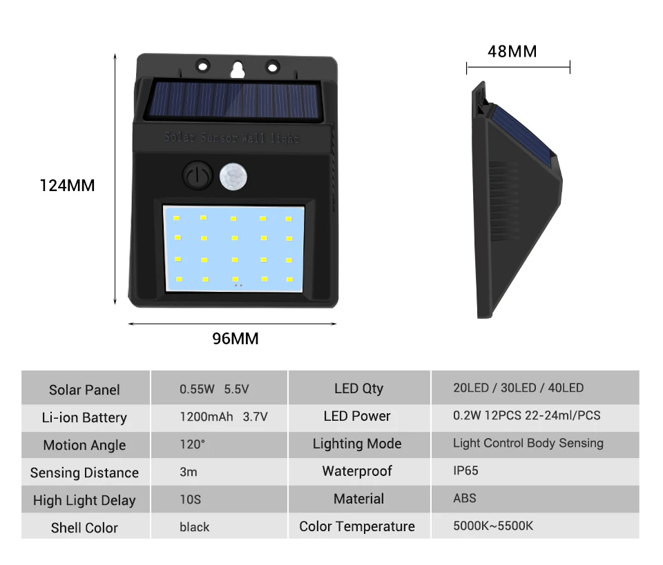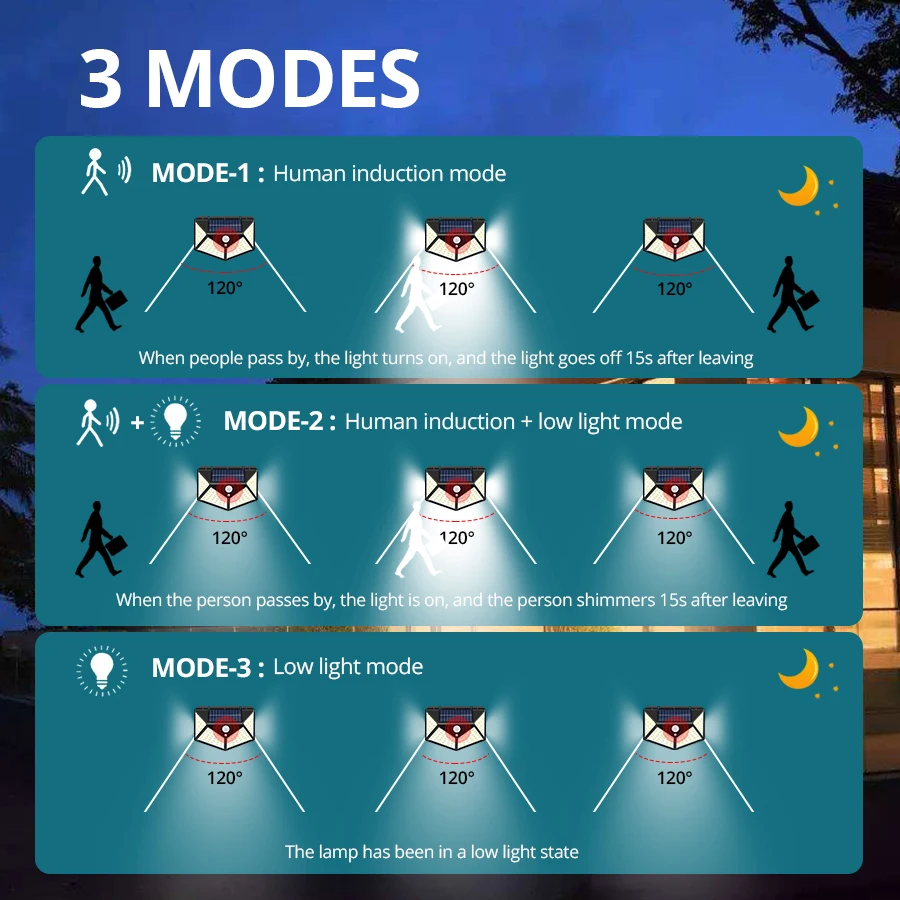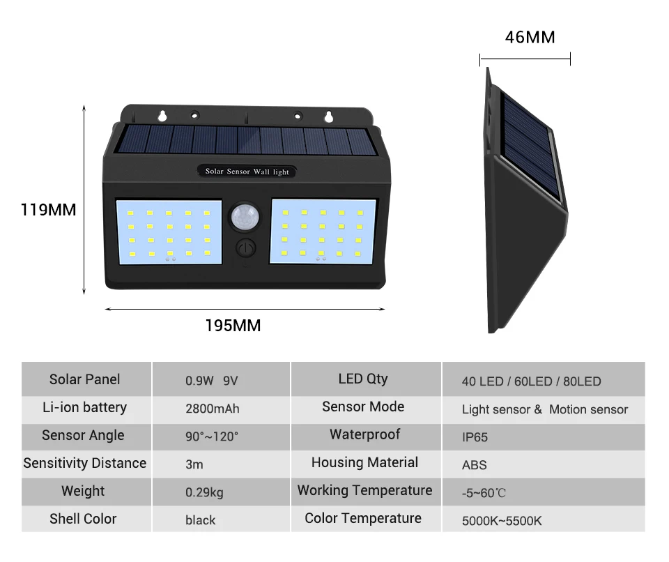Уличный светильник на солнечной батарее, 20-80 светодиодов, водонепроницаемая панель с датчиком движения, декоративный светильник для сада с пассивным ИК датчиком движения, уличная настенная лампа для дорожек