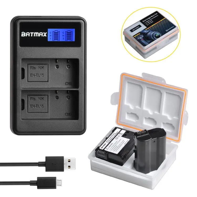 Batmax 2 шт. EN-EL15 ENEL15 Батарея + Батарея коробка для Nikon D50...