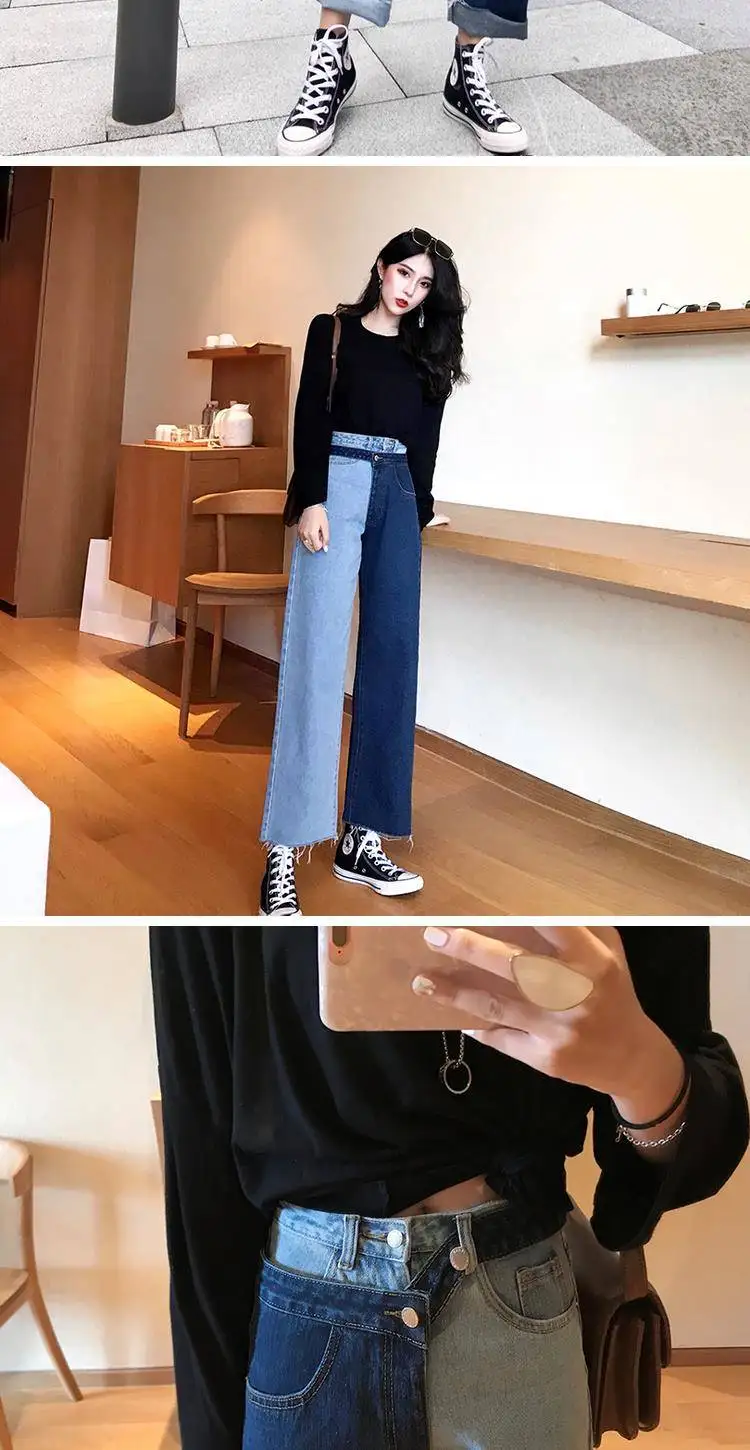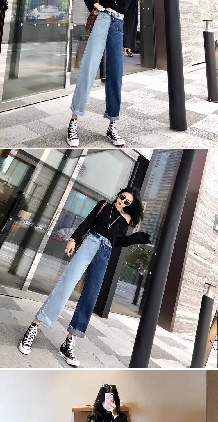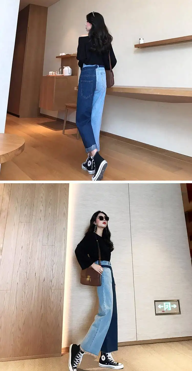 Женские повседневные джинсы Bella philosophy, белые корейские брюки со вставками, широкие штаны, свободные джинсы до щиколотки с высокой талией для весны, 2019