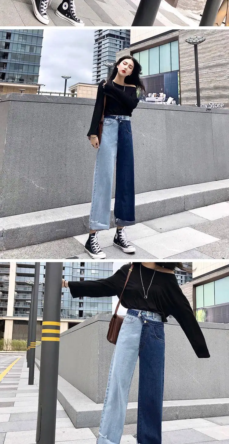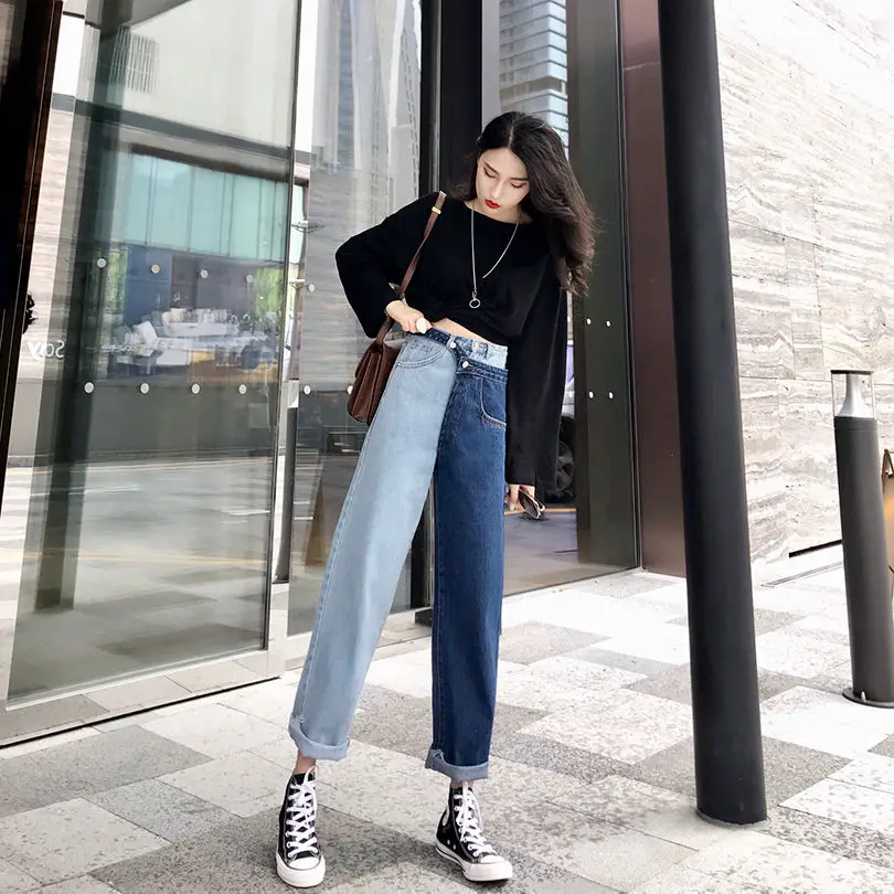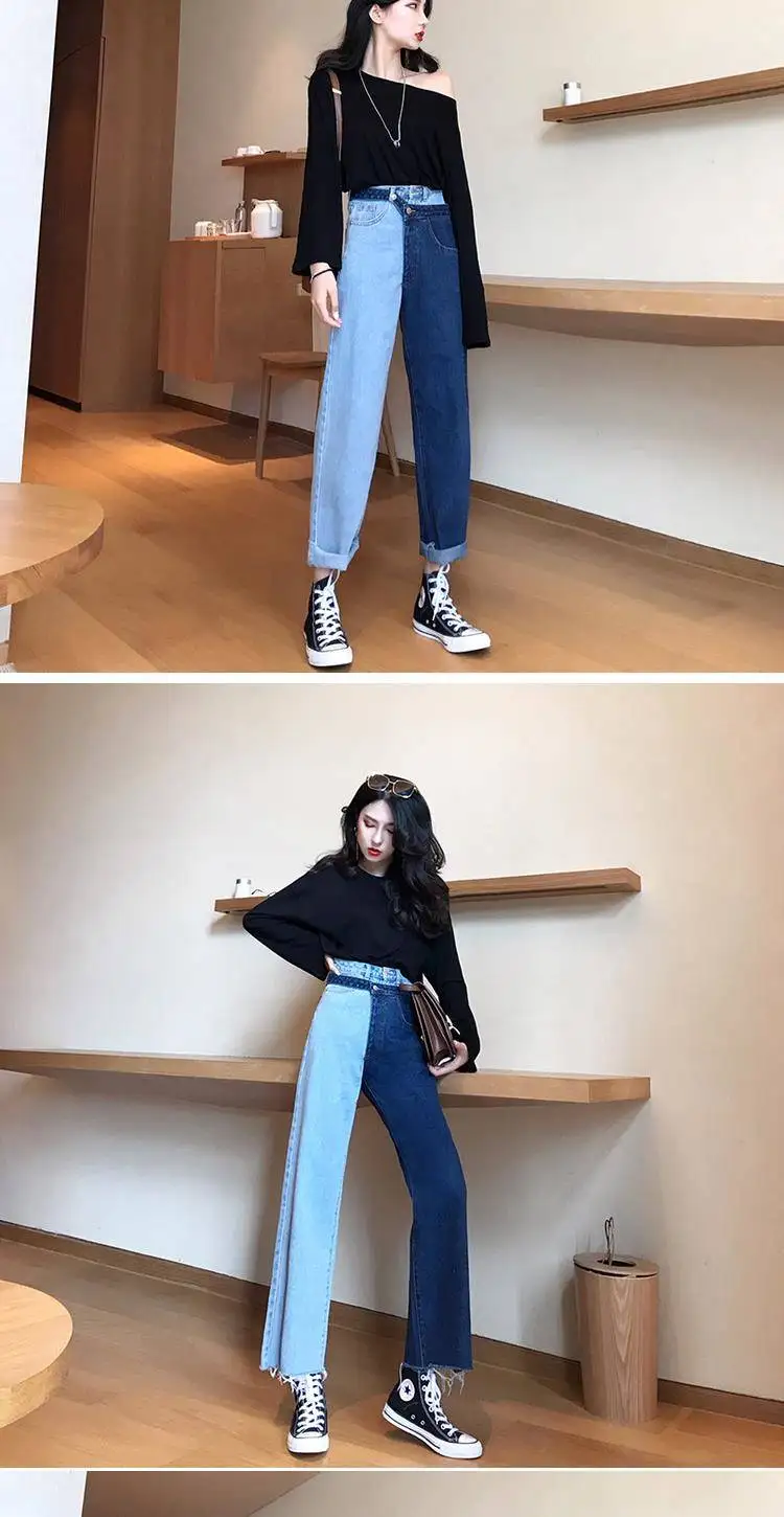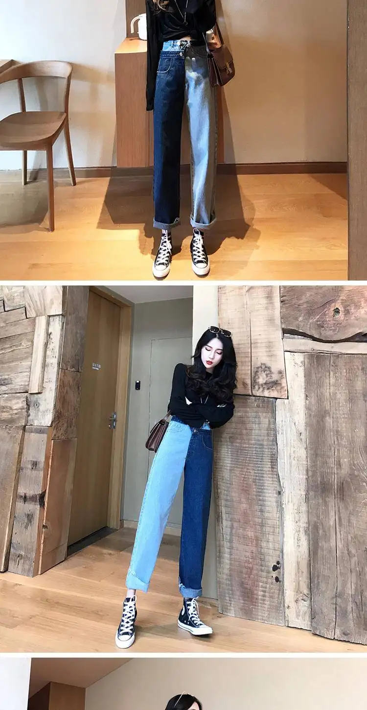 Женские повседневные джинсы Bella philosophy, белые корейские брюки со вставками, широкие штаны, свободные джинсы до щиколотки с высокой талией для весны, 2019