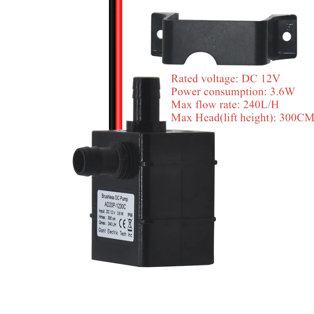 Миниатюрный погружной Бесщеточный Водяной насос, 12 В постоянного тока, 3,6 Вт, 40% лч
