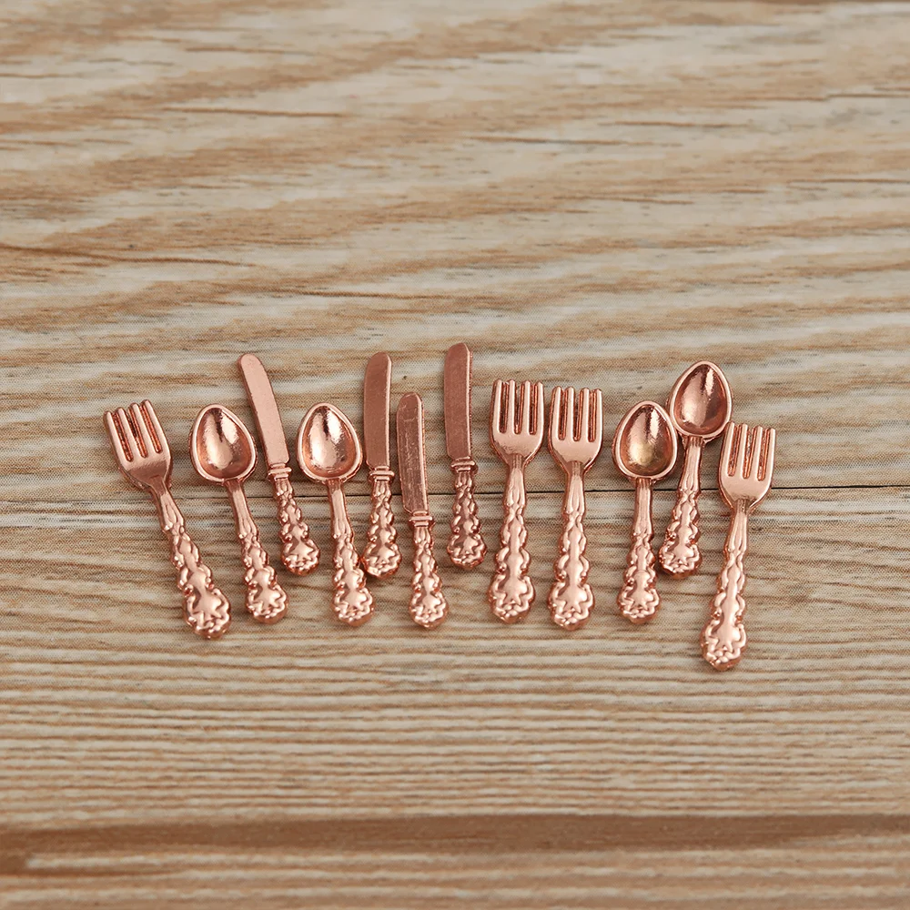 12 шт. 1:12 винтажный кукольный домик миниатюрная Посуда Столовые приборы Мини Металл золото серебро вилка нож ложка Кухня Аксессуары для игрушечной куклы