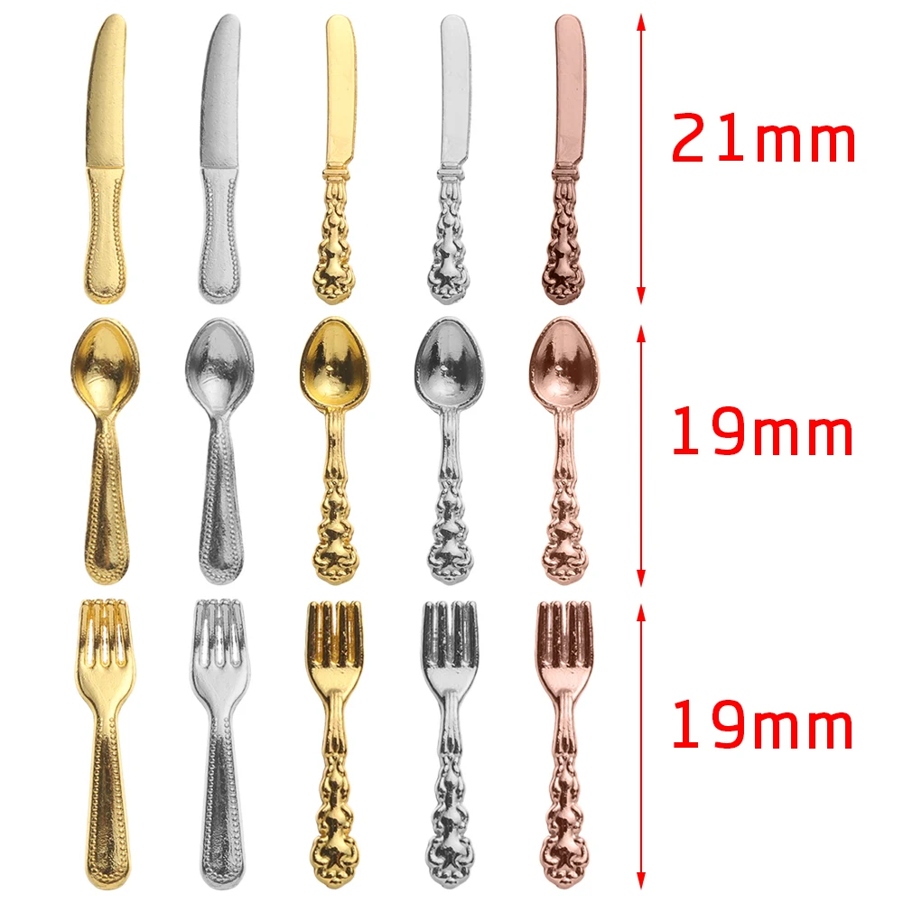 12 шт., искусственная посуда, масштаб 1:12, ЗолотаяСеребряная вилка...