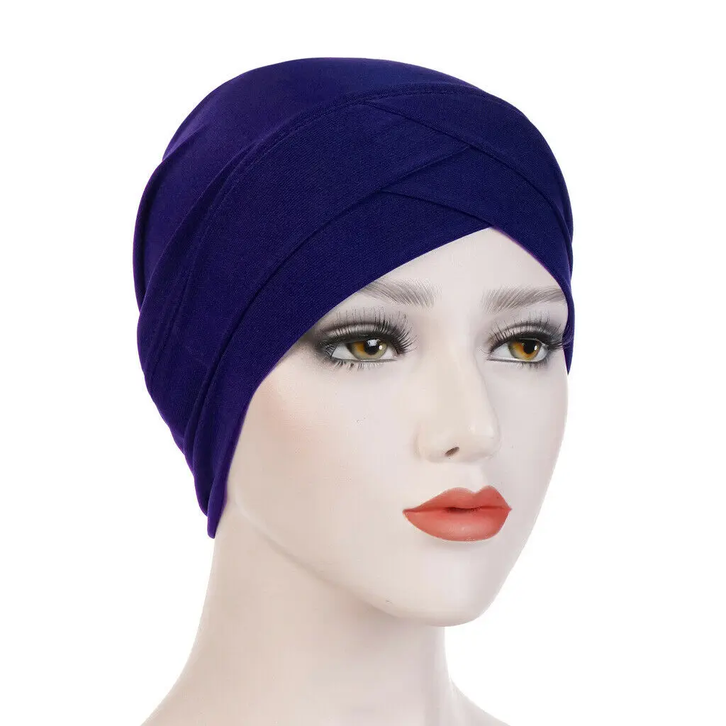 Шарф-тюрбан Женский, однотонный эластичный хиджаб с перекрестными ш...