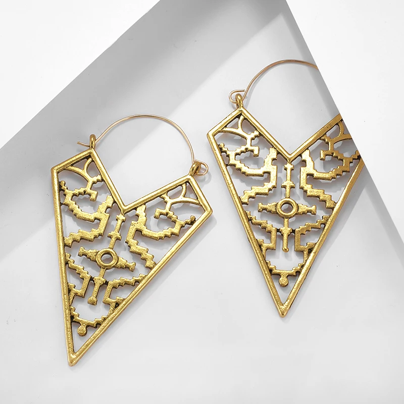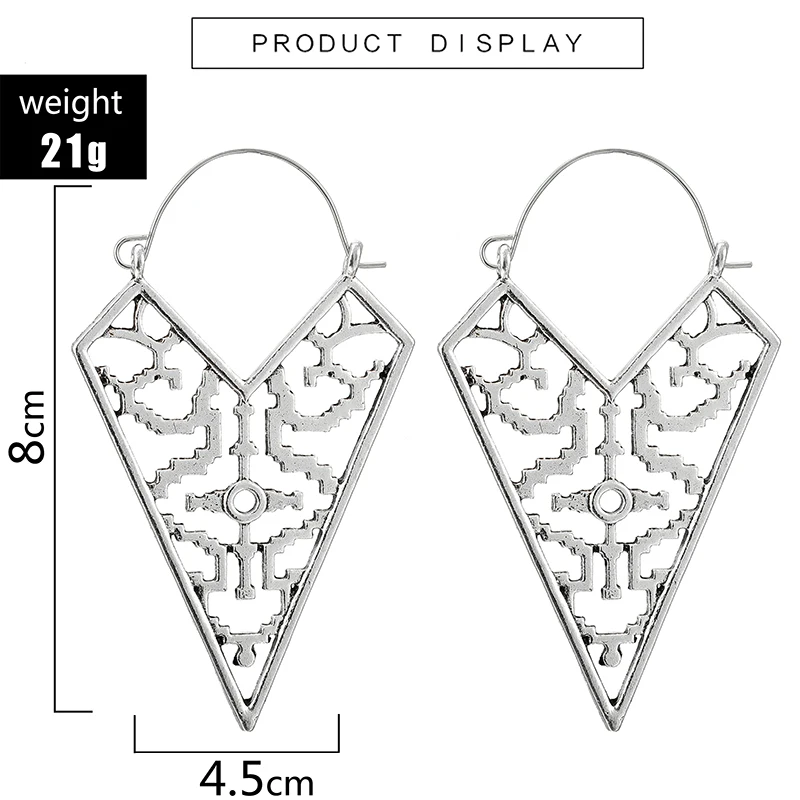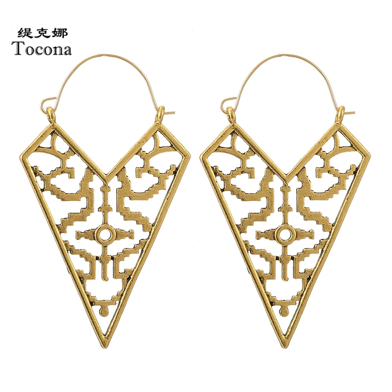 Серьги-подвески Tocona в винтажном стиле женские, висячие ювелирные украшения в форме полого треугольника, геометрической формы, цвета золото и серебро, Индия вечерние 9663