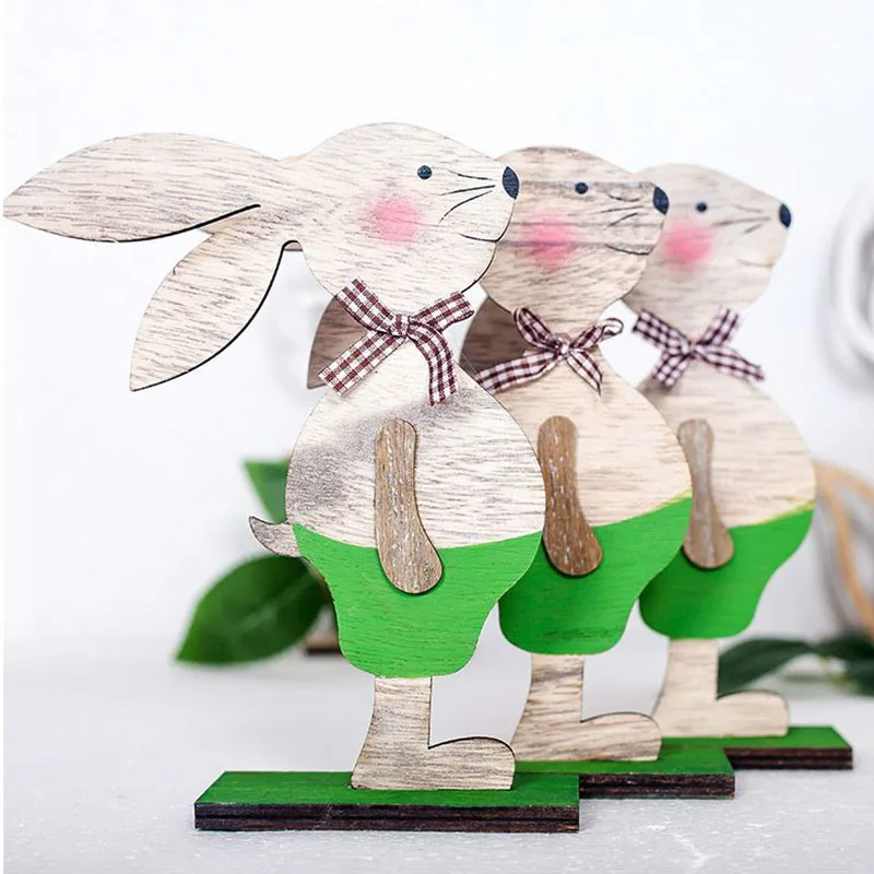 Пасхальные украшения для дома, деревянный Пасхальный кролик с пасхальными яйцами, лента, подставка, украшение сделай сам, украшения для пасхальвечерние