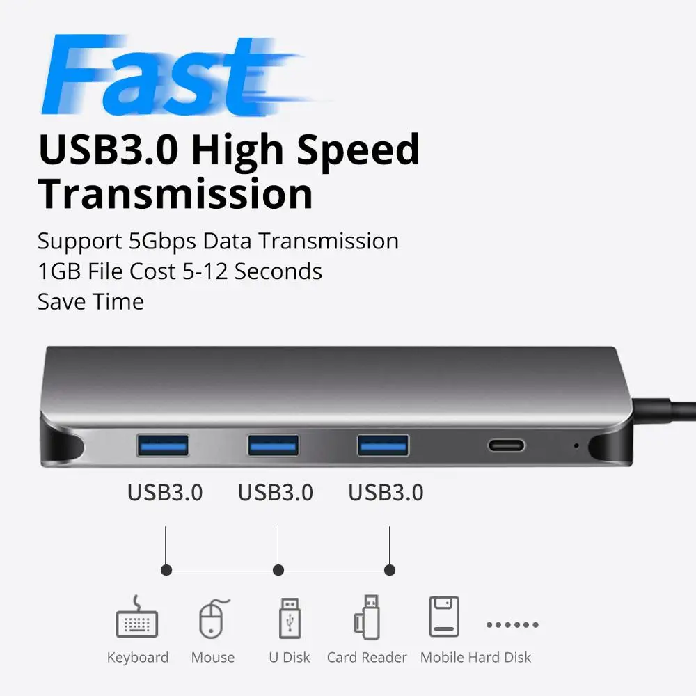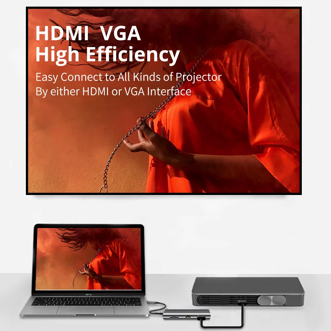 Док-станция iSky 9 в 1, USB C, PD, LAN, RJ45, HDMI, SD, TF, USB 3,0, VGA, для смартфонов