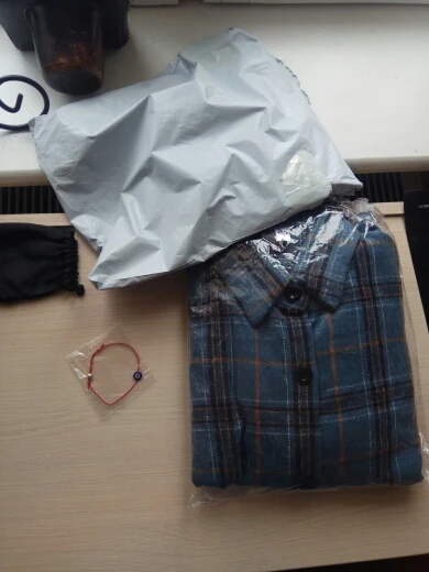 Упаковано аккуратно, продавец положил ещё браслет. Ткань приятная с обеих сторон, неприятного запаха нет. Снизу и на рукавах торчат нитки. На 46-48 заказывала XXL сидит свободно. Рукава застёгиваются идеально по запястью (плотно, но совсем не давит). Длина почти закрывает попу. Пока самая лучшая рубашка с Али.