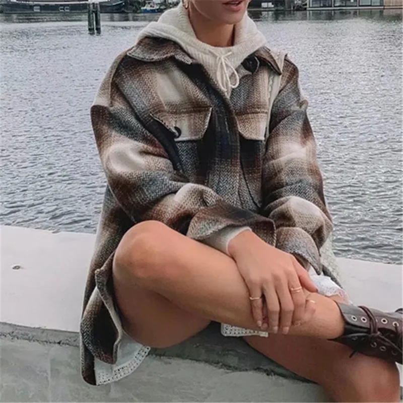 Блузка женская клетчатая, хлопковая, с длинным рукавом, на пуговицах, большого размера, на осень, размера плюс