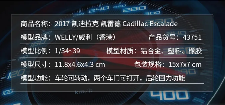 Welly 1:36 Масштаб 2017 Кадиллак эскалад роскошный внедорожник мета...