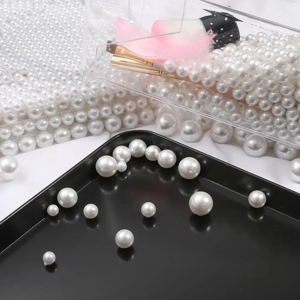 Круглые пластиковые акриловые поделки из жемчуга, белого цвета, 2-18 мм