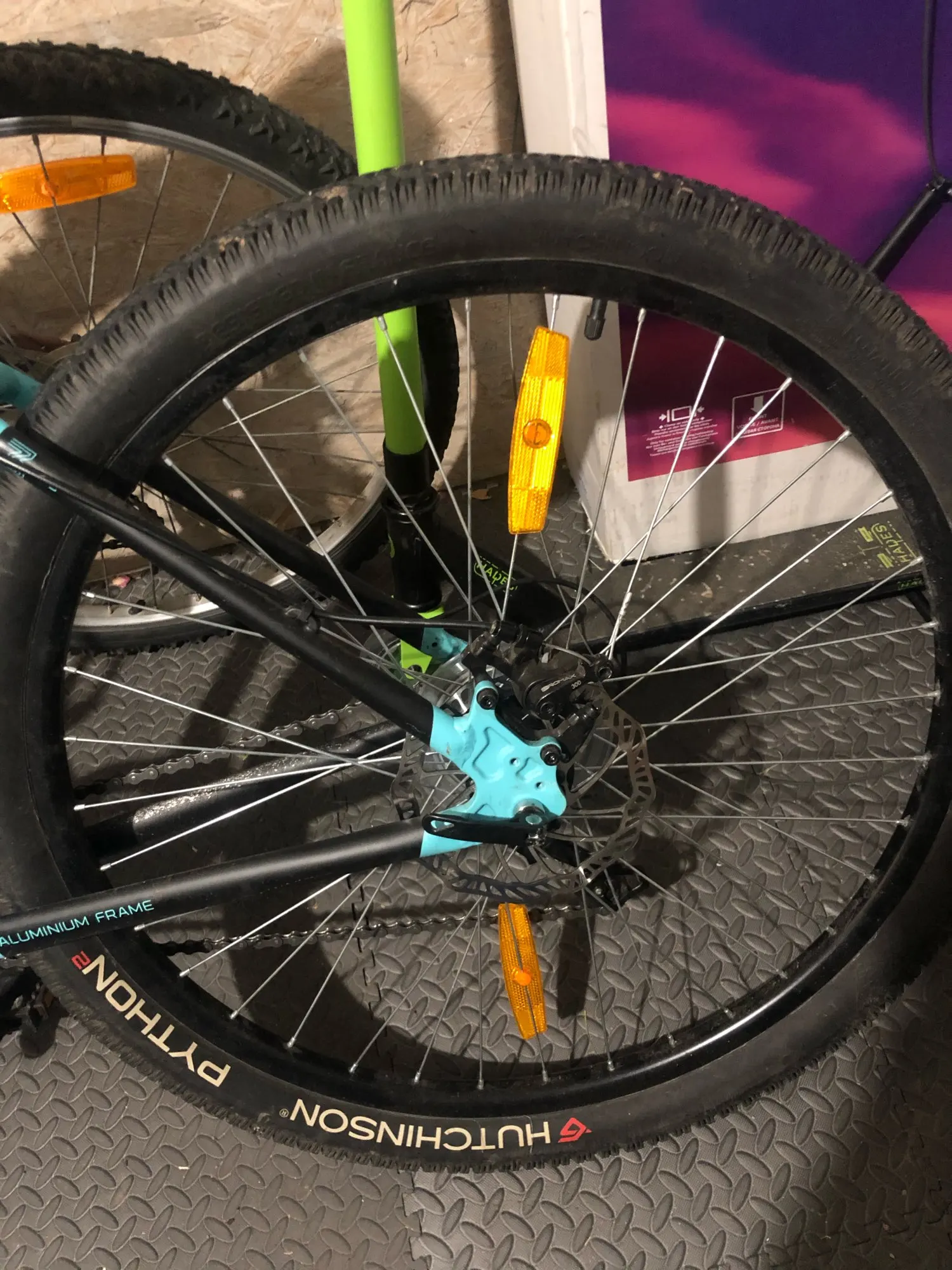 Во-первых, одна из частей для подключения к колесу повреждена. Во-вторых, включение или отсутствие товара в ночное время. Он не отражает свет. Как вы можете видеть на моей фотографии, даже деревянный стол отражает больше света, чем это. Не покупайте