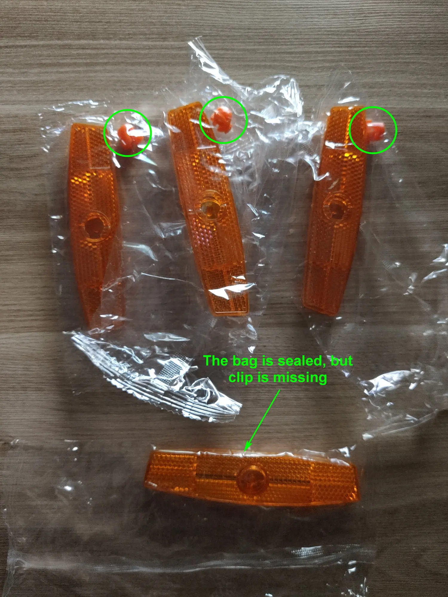 Быстрая доставка, но один отражатель не имеет внутреннего зажима (фиксация). Так как многие другие обозрения написали, Это лотерея, и, кажется, продавец не заботится о проверке товаров перед упаковкой или делает это умышенно. Один отражатель бесполезен.