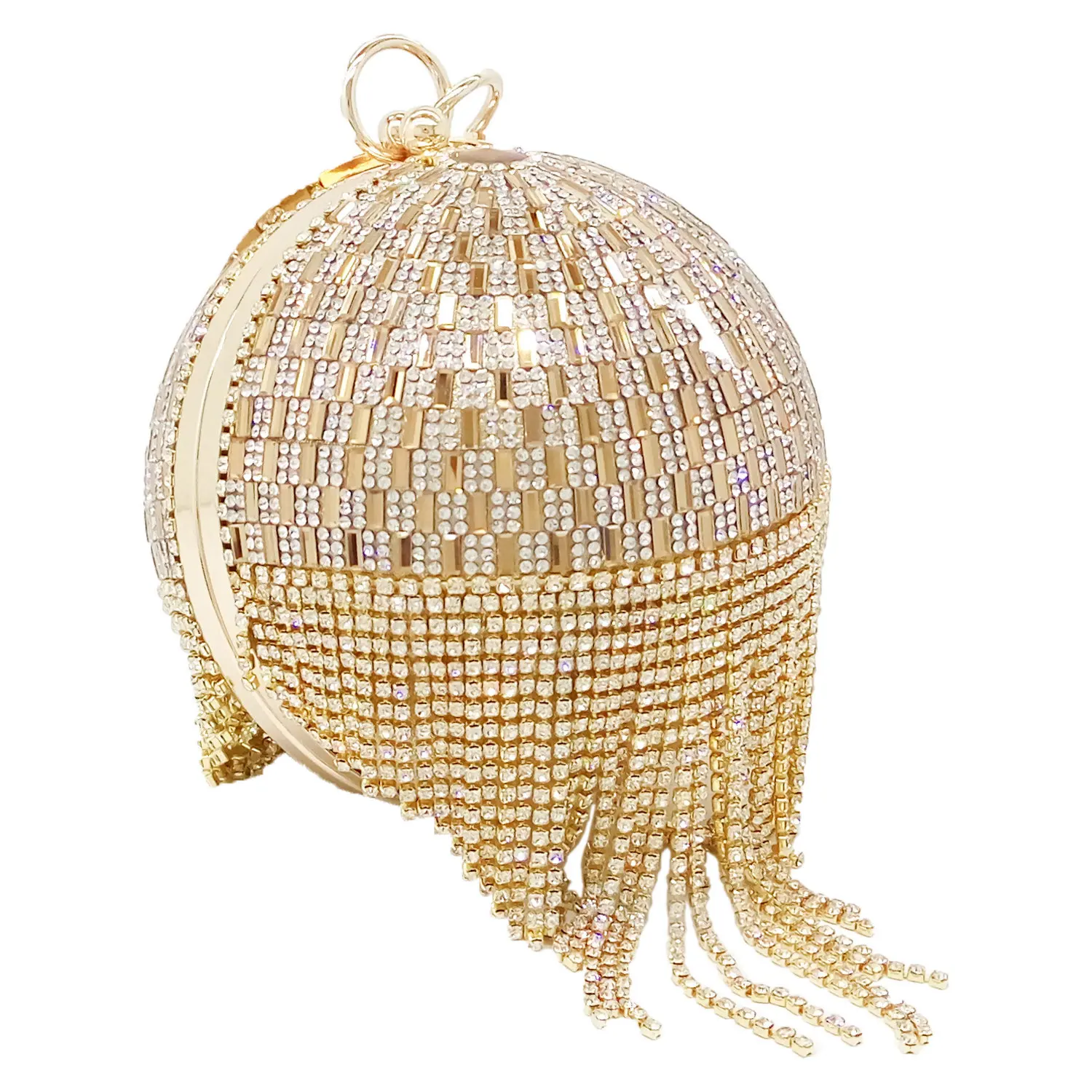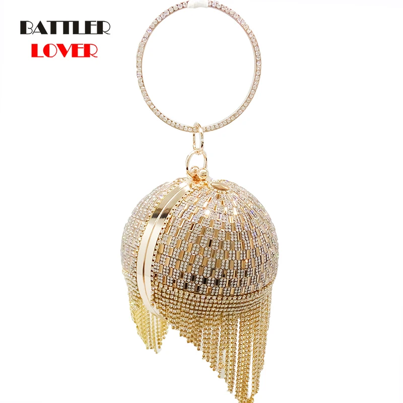 Женский вечерний клатч с золотыми бриллиантами и кисточками, металлический кристаллический клатч, вечерняя сумочка для женщин, Свадебный клатч на плечо, кошелек