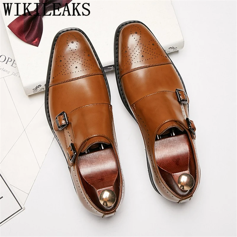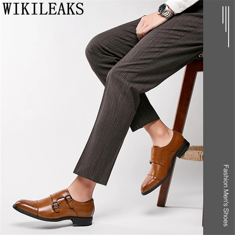 Мужские свадебные туфли с двумя ремешками и острым носком