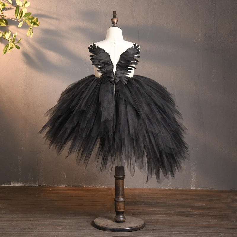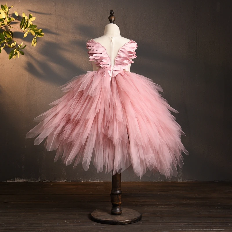 Элегантное Тюлевое платье с цветочным рисунком и кристаллами лебедя для девочек на свадьбу, детское Пышное вечернее платье для дня рождения, кружевное платье принцессы с перьями