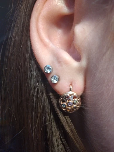 Проколола ухо, совершенно безболезненно, хожу с середкой из этого комплекта уже месяц, пока все ок. Хорошо упаковано, с комплекте спиртовая салфетка.