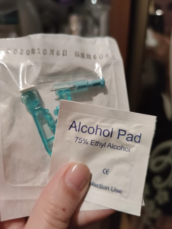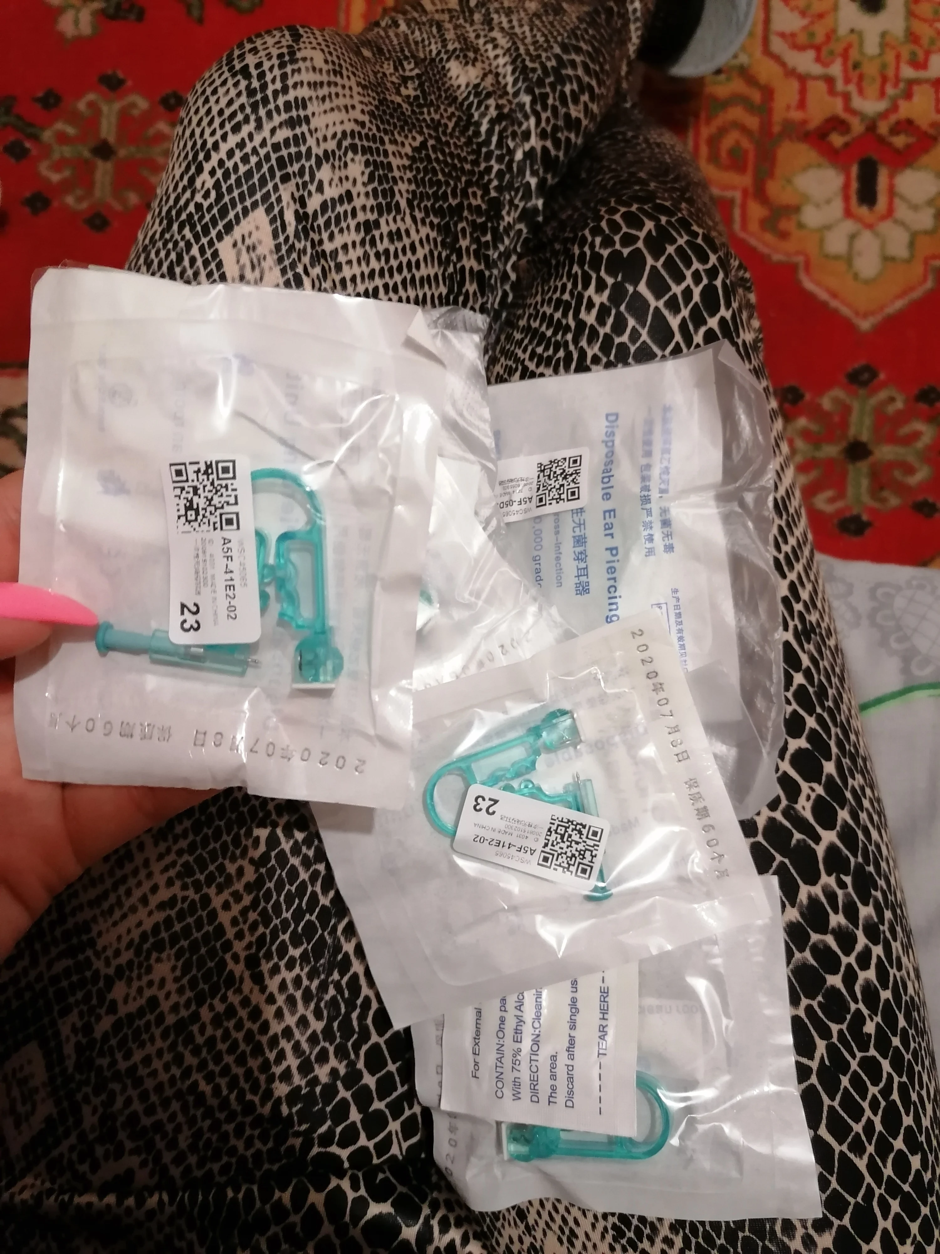 Пакет пришел вместе с другой посылкой и был порван, но все 3 штуки комплекта были в целости. Проколола быстро и без боли. Мочку уха вообще безболезненно, даже не поняла, что уже проколола. Отличная штука!