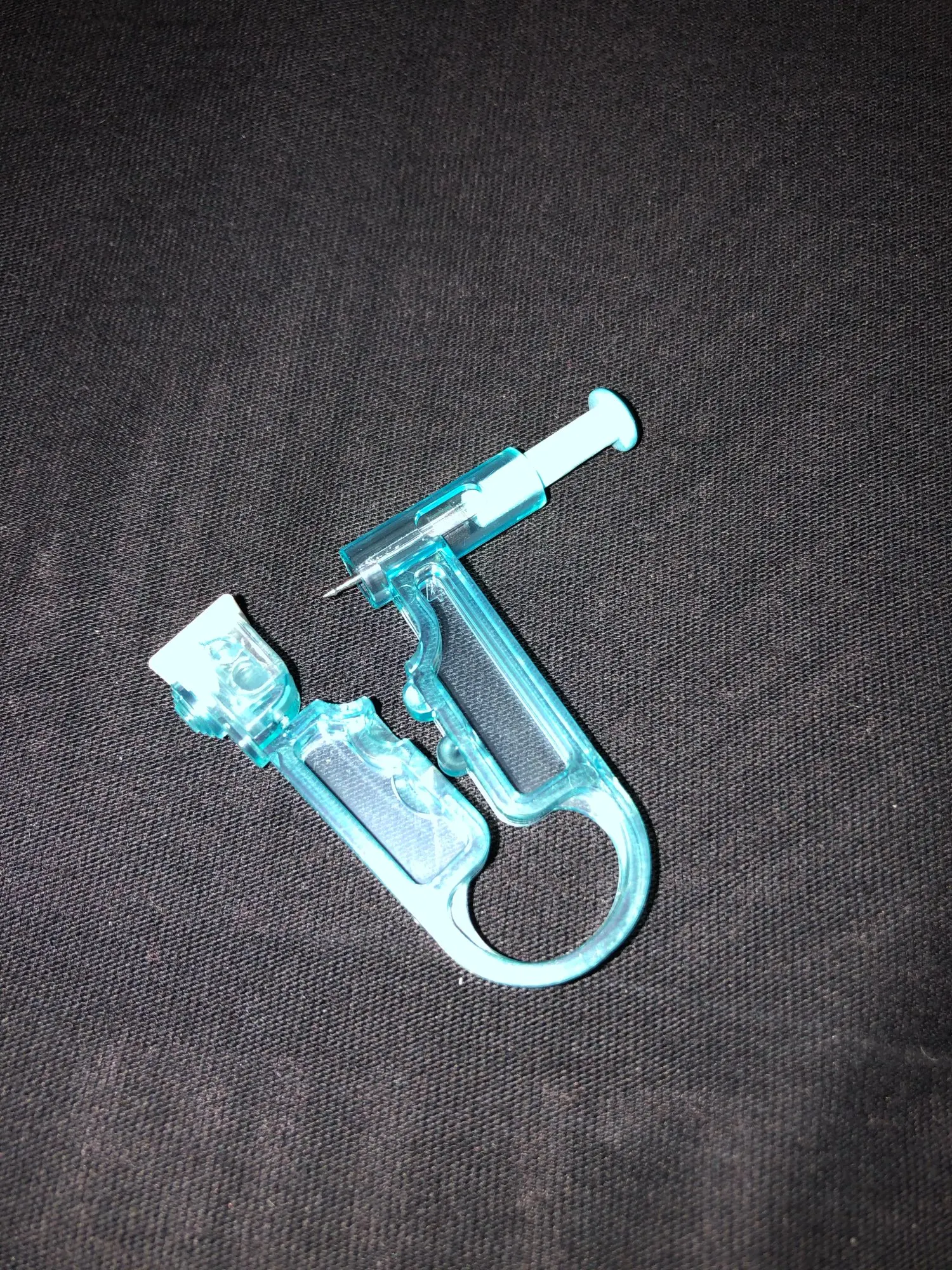 Самый обычный одноразовый пистолет. Ничего особенного, в комплекте пистолет, заряженный в него гвоздик, спиртовая салфетка. Прокалывал таким год назад ухо и нос, если с мочкой всё хорошо, то нос я вам данным устройством прокалывать не советую, ибо рваные проколы на лице не очень круто, лучше уж потратиться на катетер. Комплектация соответствует заявленной, спасибо продавцу.