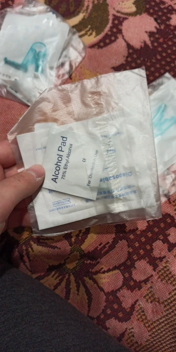 была в шоке, но за такую маленькую цену реально крутой комплект!! идеально проколол, без крови и почти без боли, в комплекте была обеззараживающая тряпочка. пришла дней за 20-40(?)