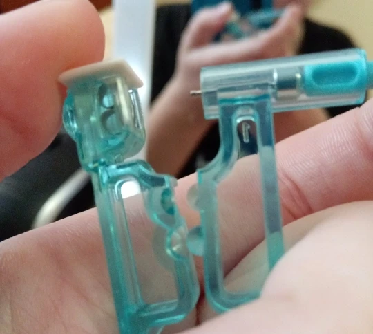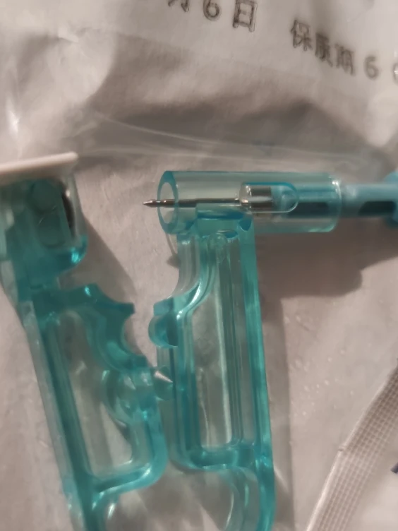Товар хорошего качества, хотя на вид смотрится игрушечным. Проколола две дырочки без проблем, боли практически нет. Единственное пришлось перекалывать, но это мой косяк, прокол ушёл немного в бок. Всем довольна, кроме доставки, она длилась почти 2 месяца.
