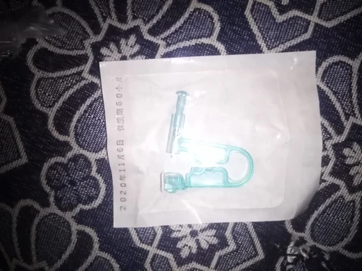 Отлично, это стоило ожидания, экономия значительна. Заплатить от 11 до 13 евро в аптеке или 30 в магазине пирсинга... Нет цвета 0,68 цента единицы.. Почти без боли. Первое фото, когда это было сделано