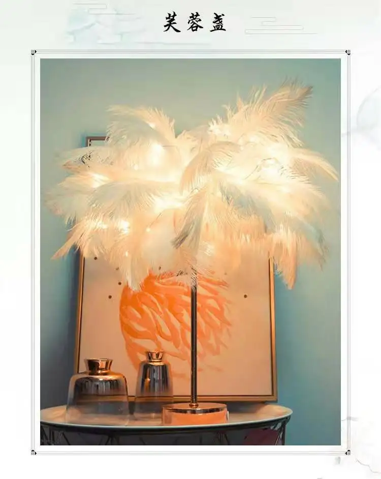 Светодиодные Настольные светильники в простом стиле, светильники из страусиных перьев для спальни, девичьей комнаты, украшение из перьев