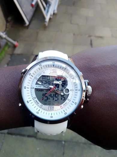 -Описание:Стиль: роскошный спортивный армейский военныйСостояние на 100% абсолютно новый высокого качестваФункция: Двойное время, будильник, секундомер, хронограф, светодиодный светильник, дата, неделя, месяцВодонепроницаемость: 3 АТМ/30 м (можно плавать в холодной воде, но не нажимать ни одну клавишу под водой)-СпецификацияМатериал корпуса: сплавЧехол Диаметр: 5,0 смЧехол Толщина: 1,8 смМатериал ремешка: руберГруппа Длина: 26,5 смГруппа Ширина: 2,3 смВес часов: 125 г-Посылка:100% новые часы * 1-Способ продажи: Прямая поставка, опт, розница