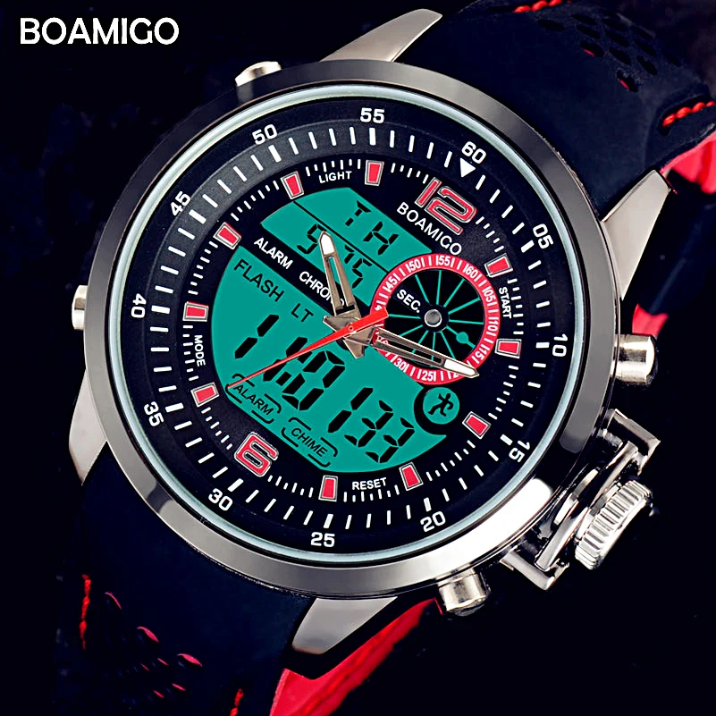 BOAMIGO Роскошные Дизайнерские мужские часы Красные спортивные часы relojes de cuarzo цифровые часы кварцевые наручные часы relogio masculino