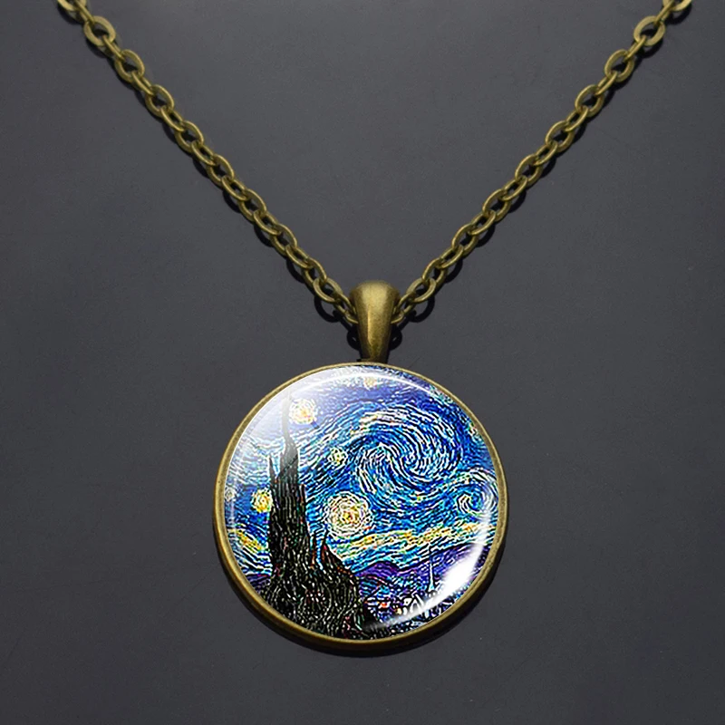 Модные аксессуары, ожерелье с подвеской Звездная ночь с изображением Ван Гога, Черная Цепь, ювелирные изделия Ван Гога для женщин и мужчин, подарок