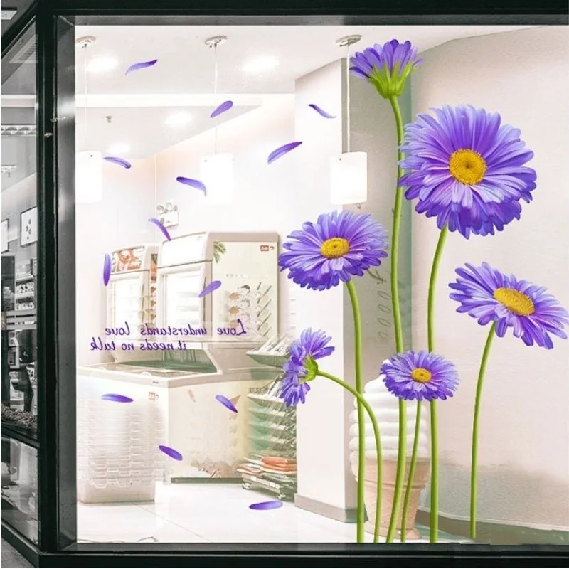 Настенные стикеры в виде цветов, настенные наклейки сделай сам с цветами для стеклянной раздвижной двери, украшение для дома, Витрины Магазина, окна
