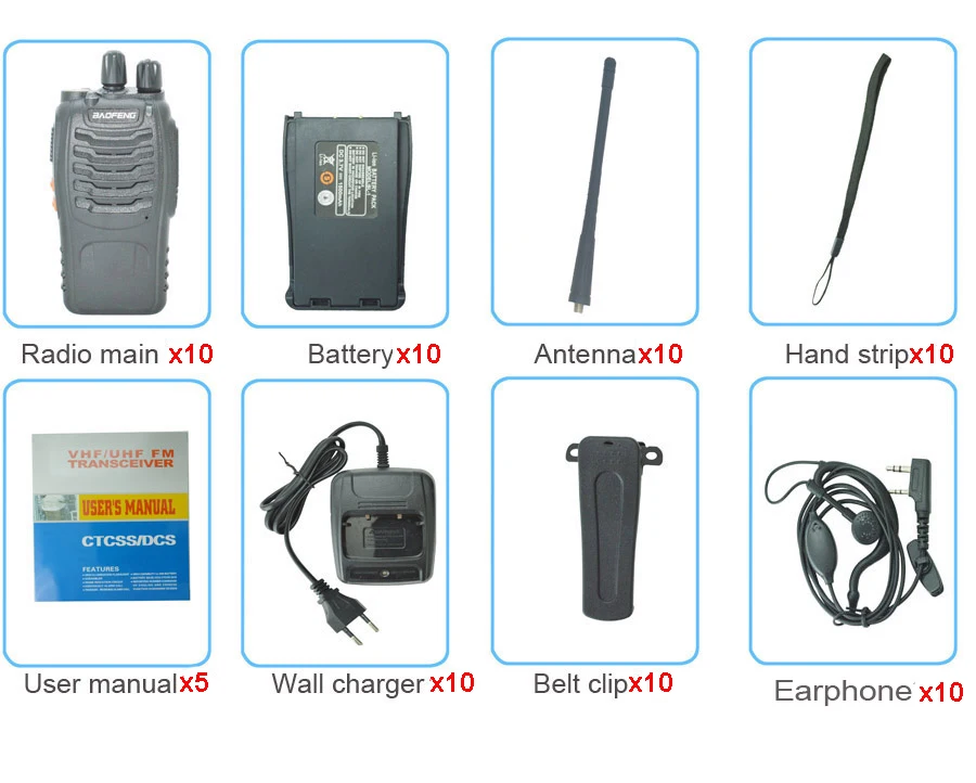 Радиостанция Baofeng BF-888S, 16 каналов, UHF, 400-470 нгц, 10 шт.
