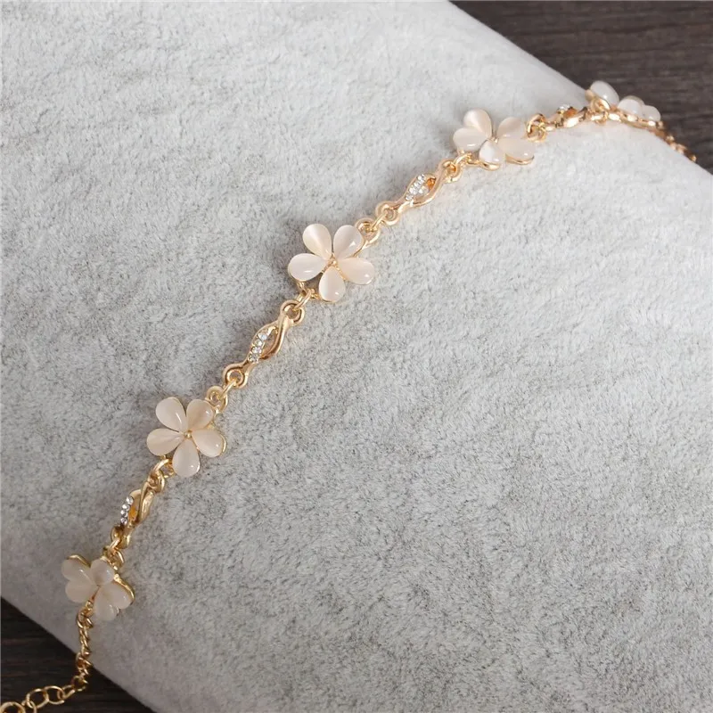Изящный браслет-цепочка с опаловым камнем и цветами для женщин, очаровательный аксессуар для банкета, женский элегантный браслет, браслеты, ювелирные изделия