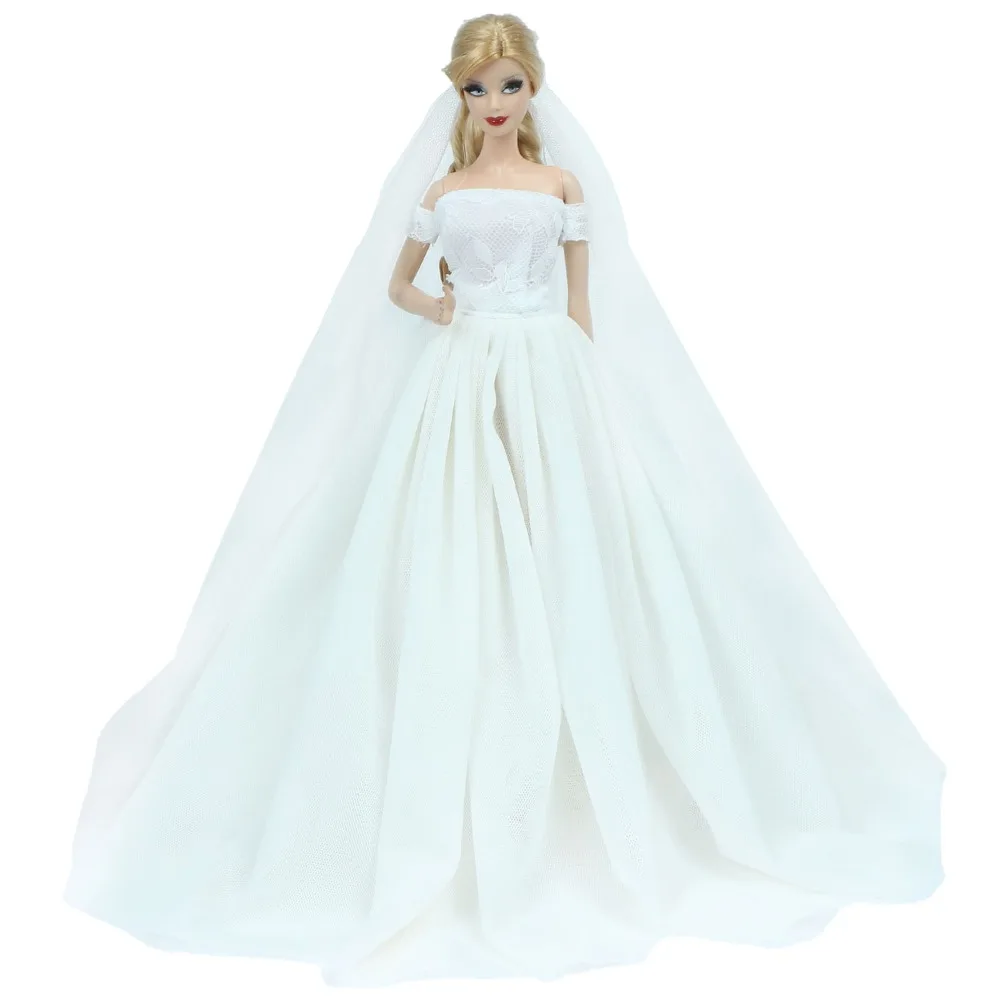 Модное платье принцессы, свадебное вечернее платье, красивая белая юбка с вуалью для невесты, элегантная одежда для куклы Барби, Детские аксессуары, игрушка