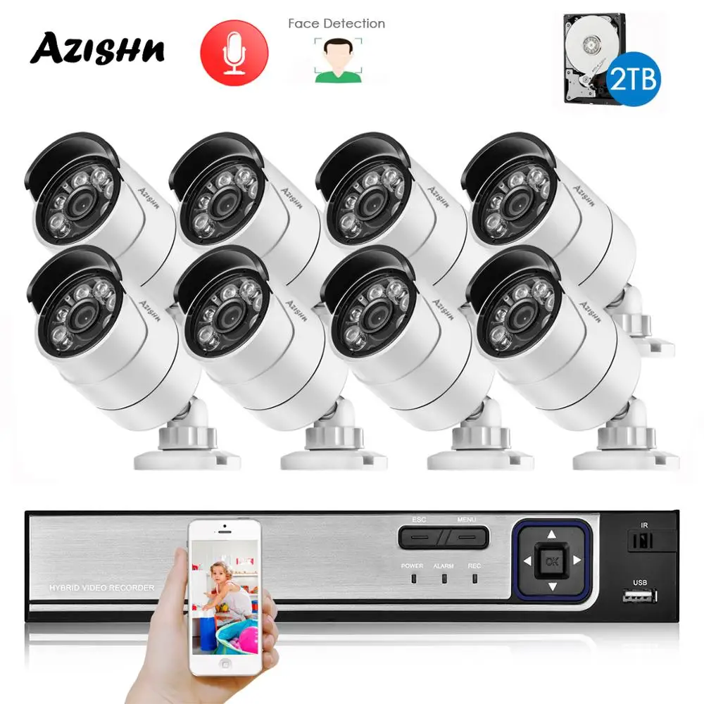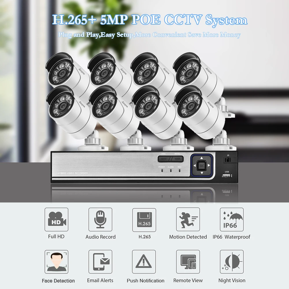Система видеонаблюдения H.265, 8 каналов, HD 5,0 МП, ip-камеры 5 Мп 2592X1944 для помещений и улицы, с датчиком лица и звуком