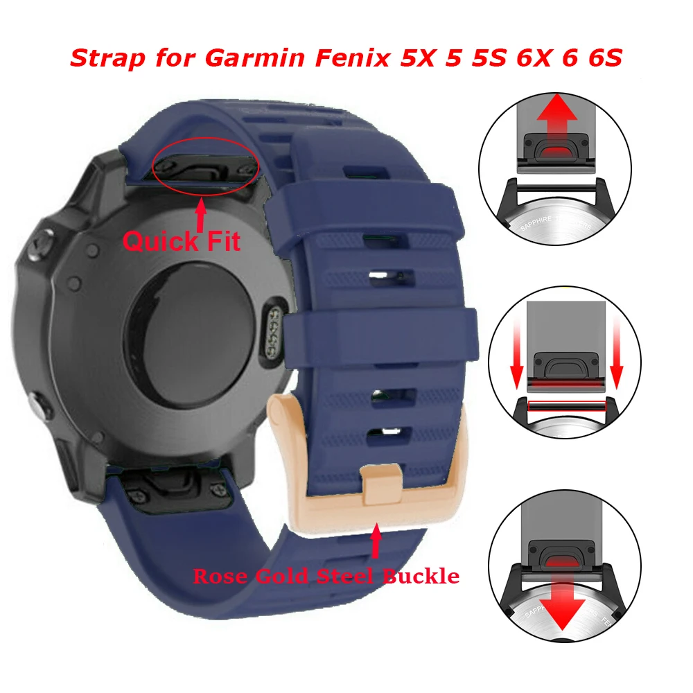 Ремешок силиконовый быстросъемный для наручных часов, быстросъемный браслет для Garmin Fenix 6X Pro 5X 5S Easyfit, 26 22 20 мм для Fenix6 6S Pro Watch