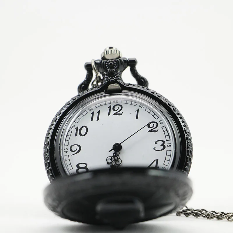 Модные полые наручные кварцевые часы в форме половинчатого охотника, винтажные черные карманные часы с цепочкой и ожерельем, подарок для детей, мужчин и женщин