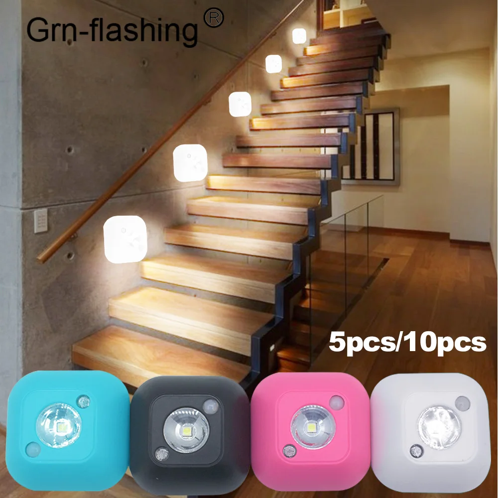 5 предметов в лоте, 10 шт мини smart средства ухода за кожей Беспроводной LED Сенсор Ночной светильник PIR Магнитный инфракрасный датчик движения аварийные светодиодные лампочки для настенного светильника шкафа лестницы