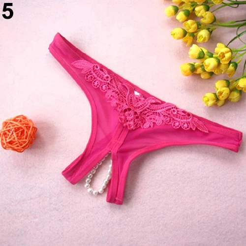 Женские сексуальные трусики-стринги с вырезами из искусственного жемчуга, трусики-стринги с открытой промежностью, нижнее белье