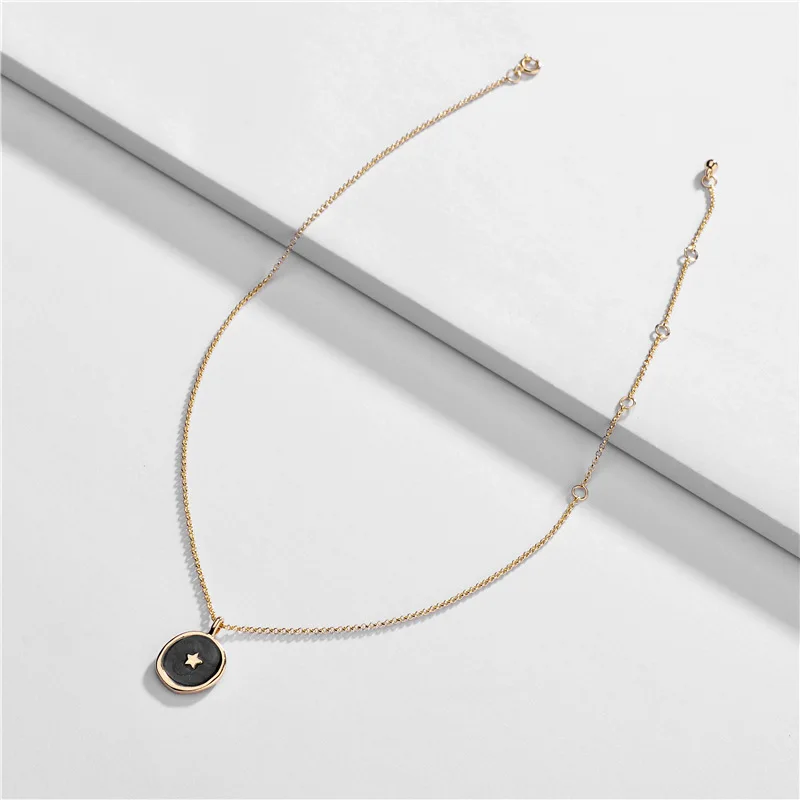 Ожерелье женское эмалированное, с круглым кулоном в виде Луны и звезды