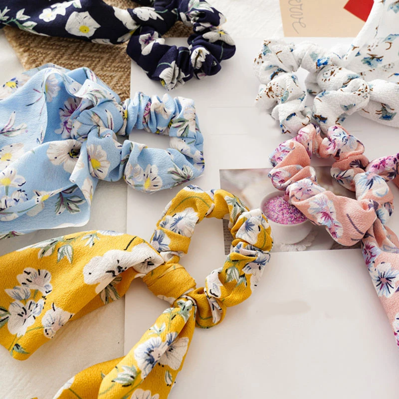 Резинка для волос Женская эластичная в горошек, с цветочным принтом