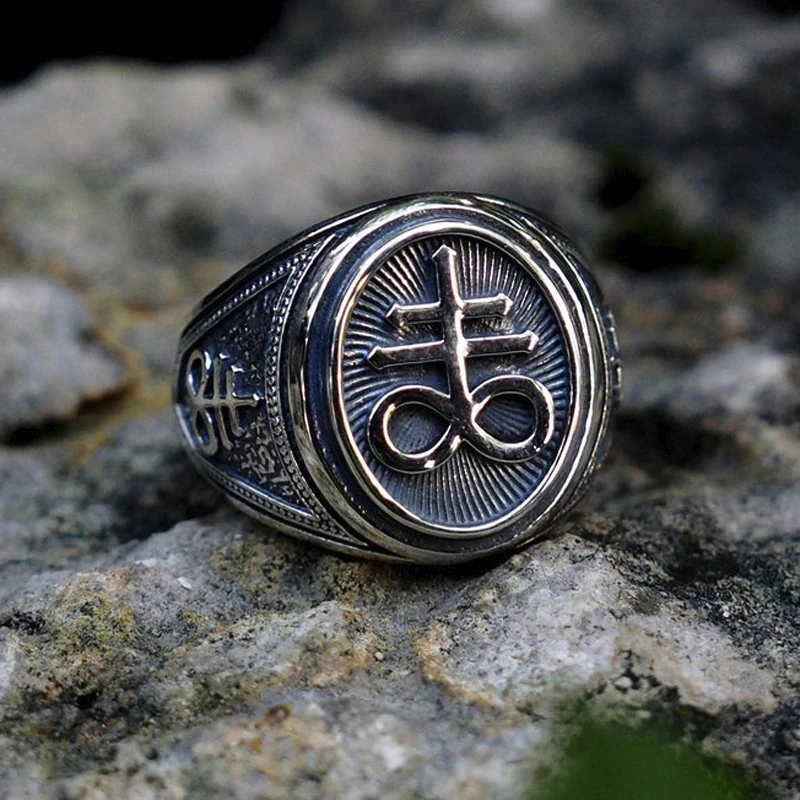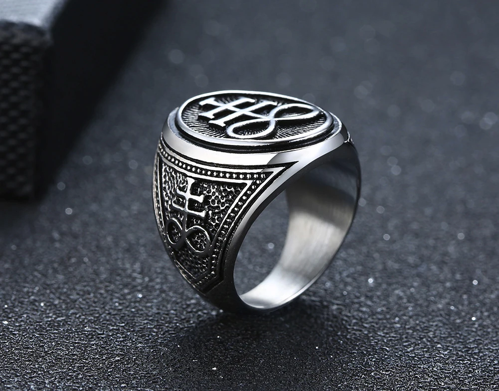 Сатанинское кольцо для мужчин, ювелирные изделия, кольца из серы, нержавеющая сталь, Левиафан, крест, кольцо